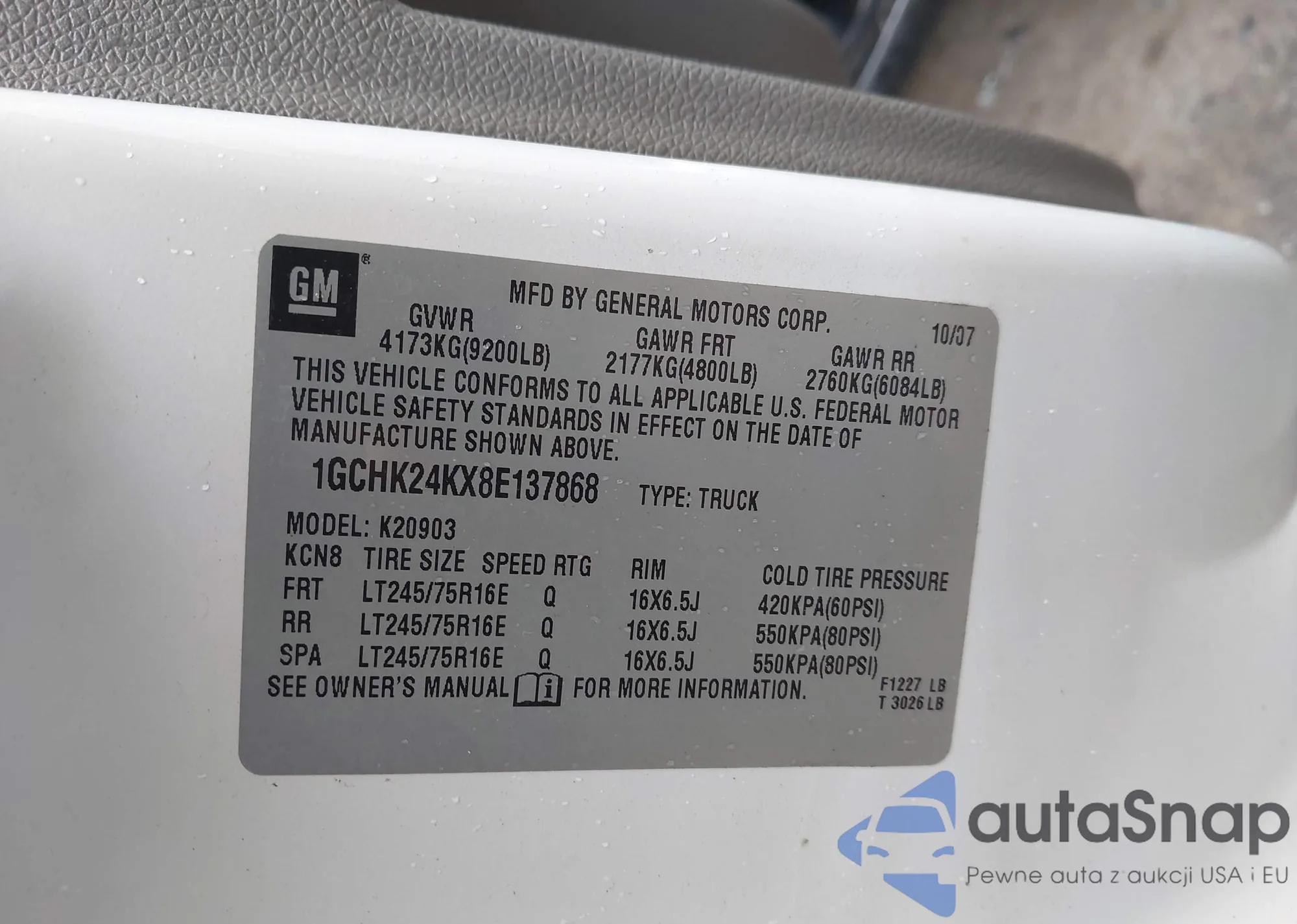 • VIN 1GCHK24KX8E137868