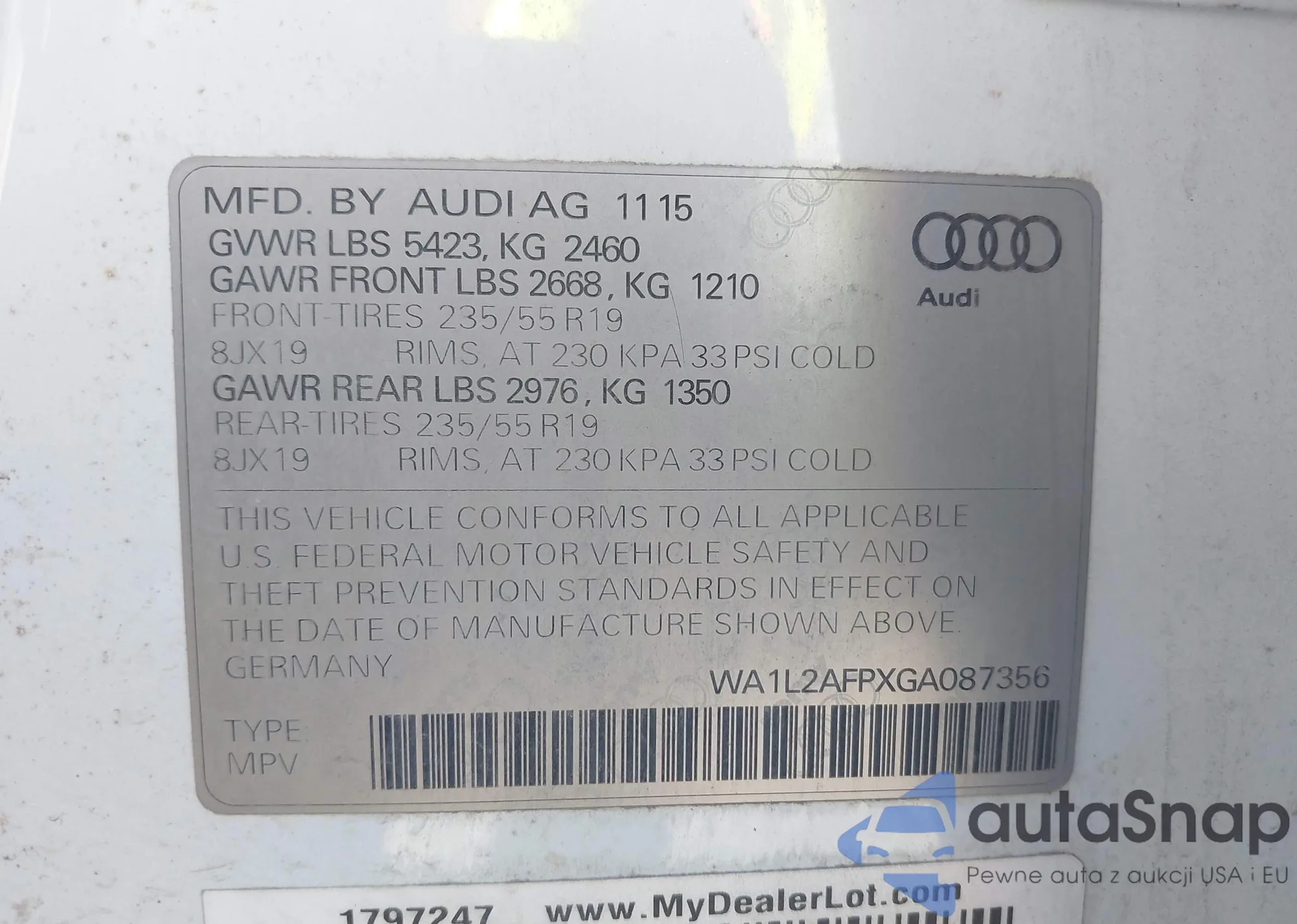 LOT: 43373673 VIN: WAUHGAFC3DN068286
