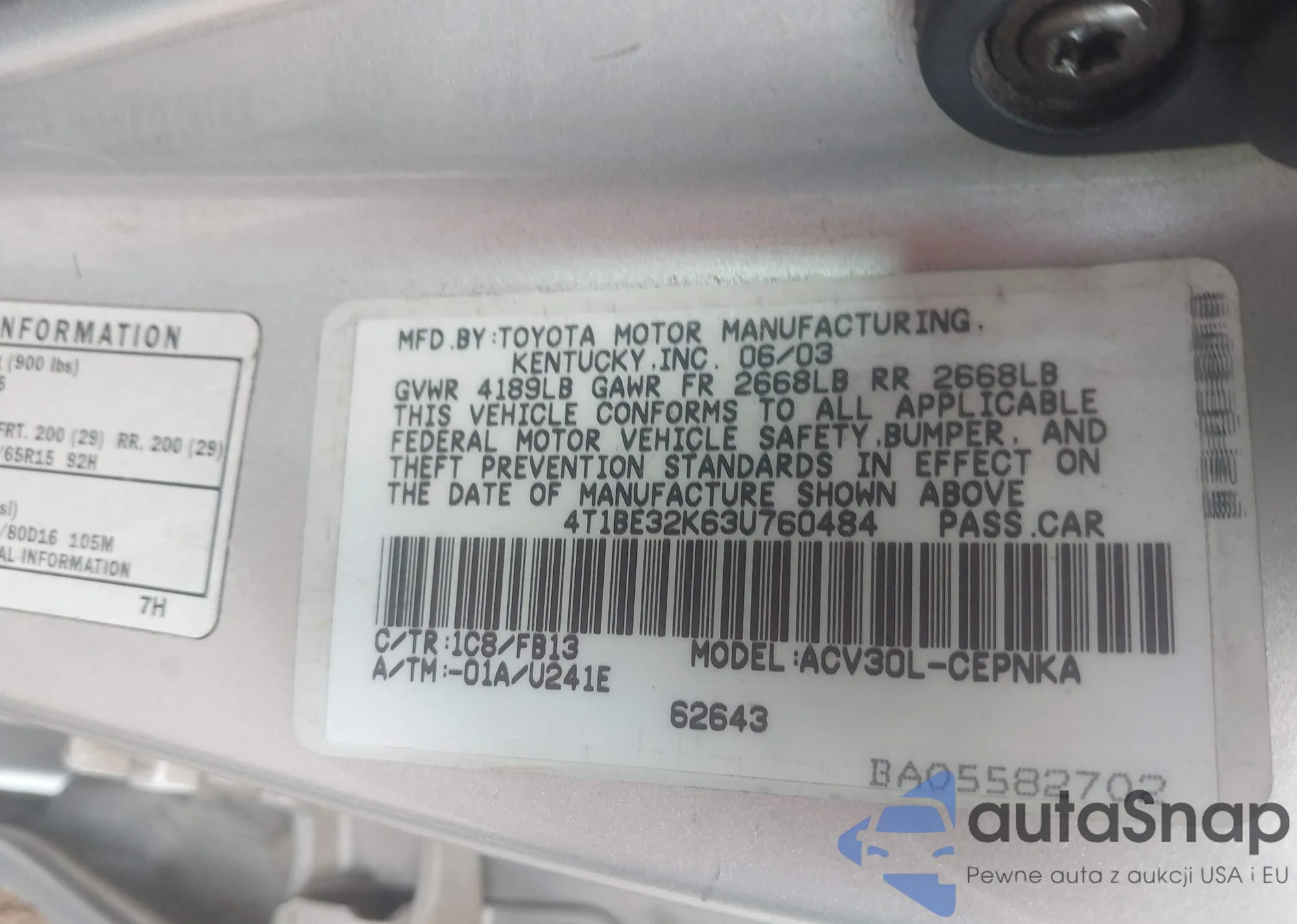 • VIN 4T1BE32K63U760484