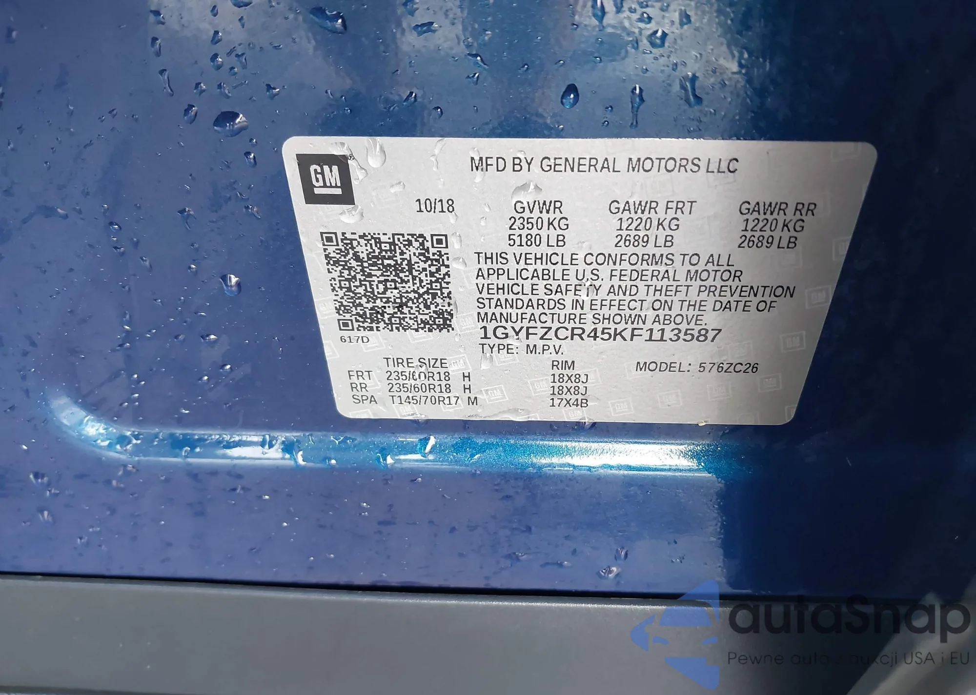• VIN 1GYFZCR45KF113587