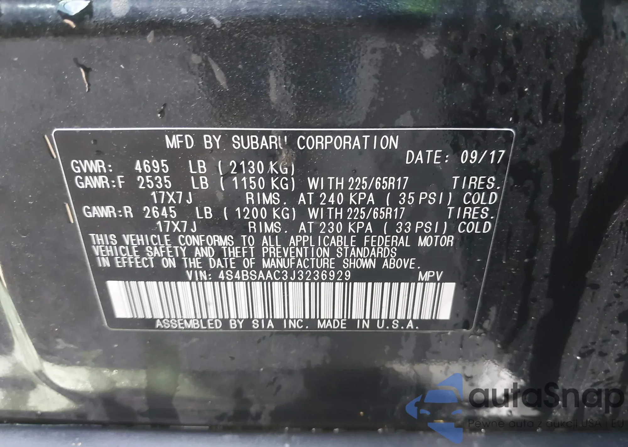 • VIN 4S4BSAAC3J3236929