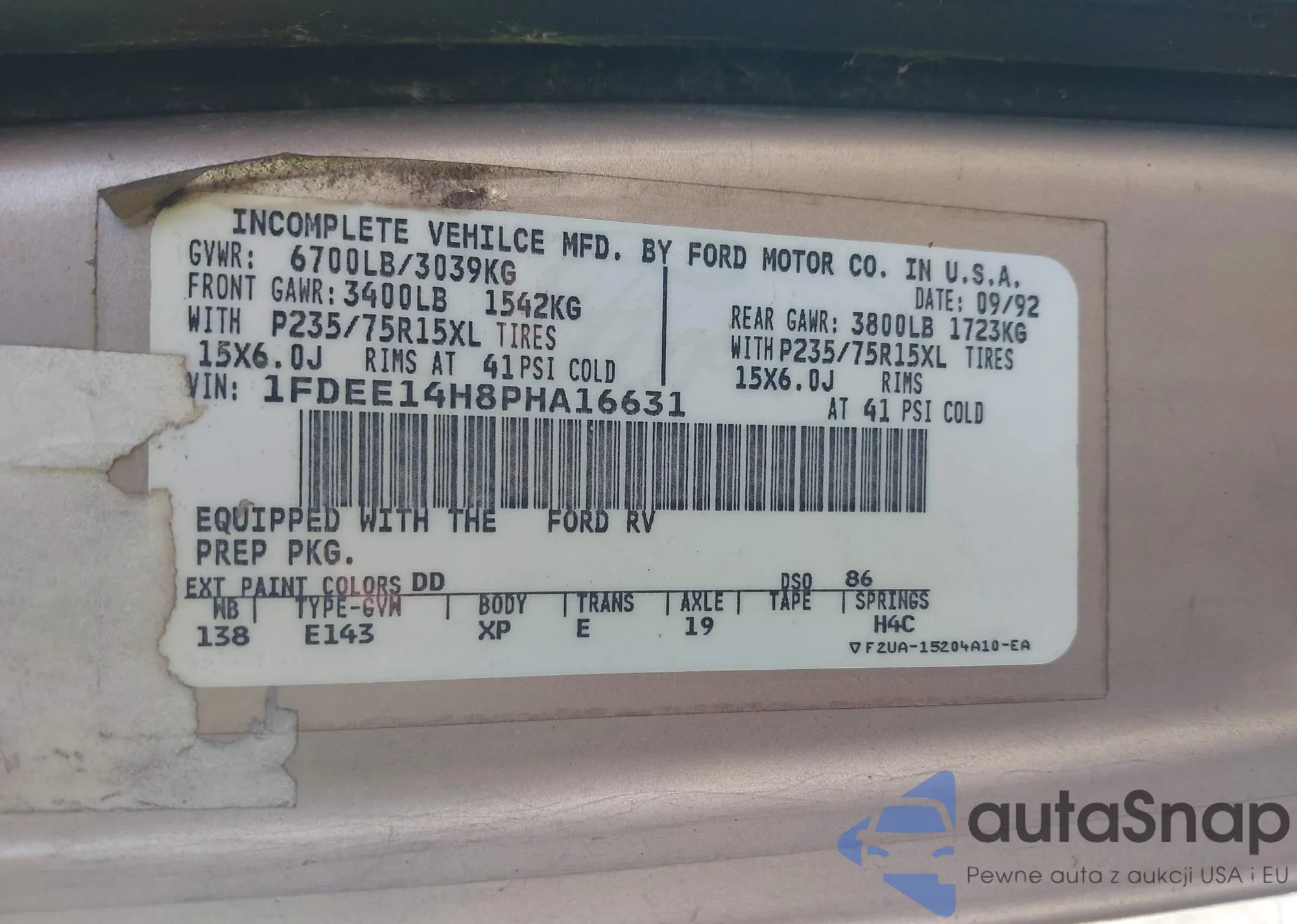 • VIN 1FDEE14H8PHA16631