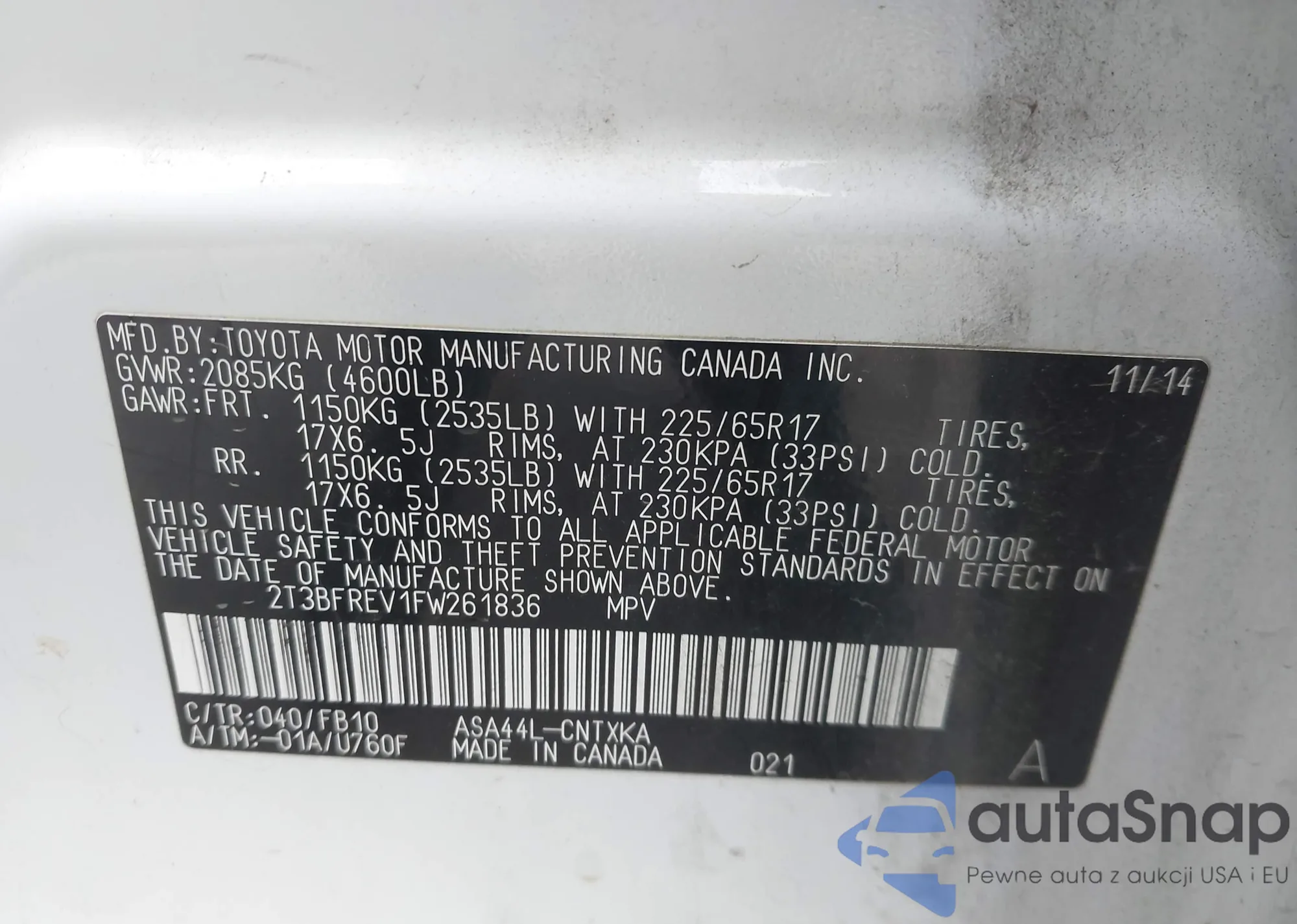 LOT: 43457196 VIN: 1ZVBP8AM8E5319898