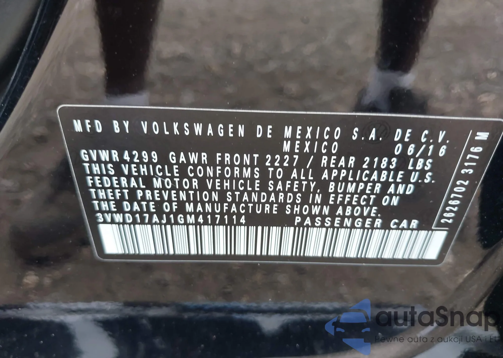 • VIN 3VWD17AJ1GM417114