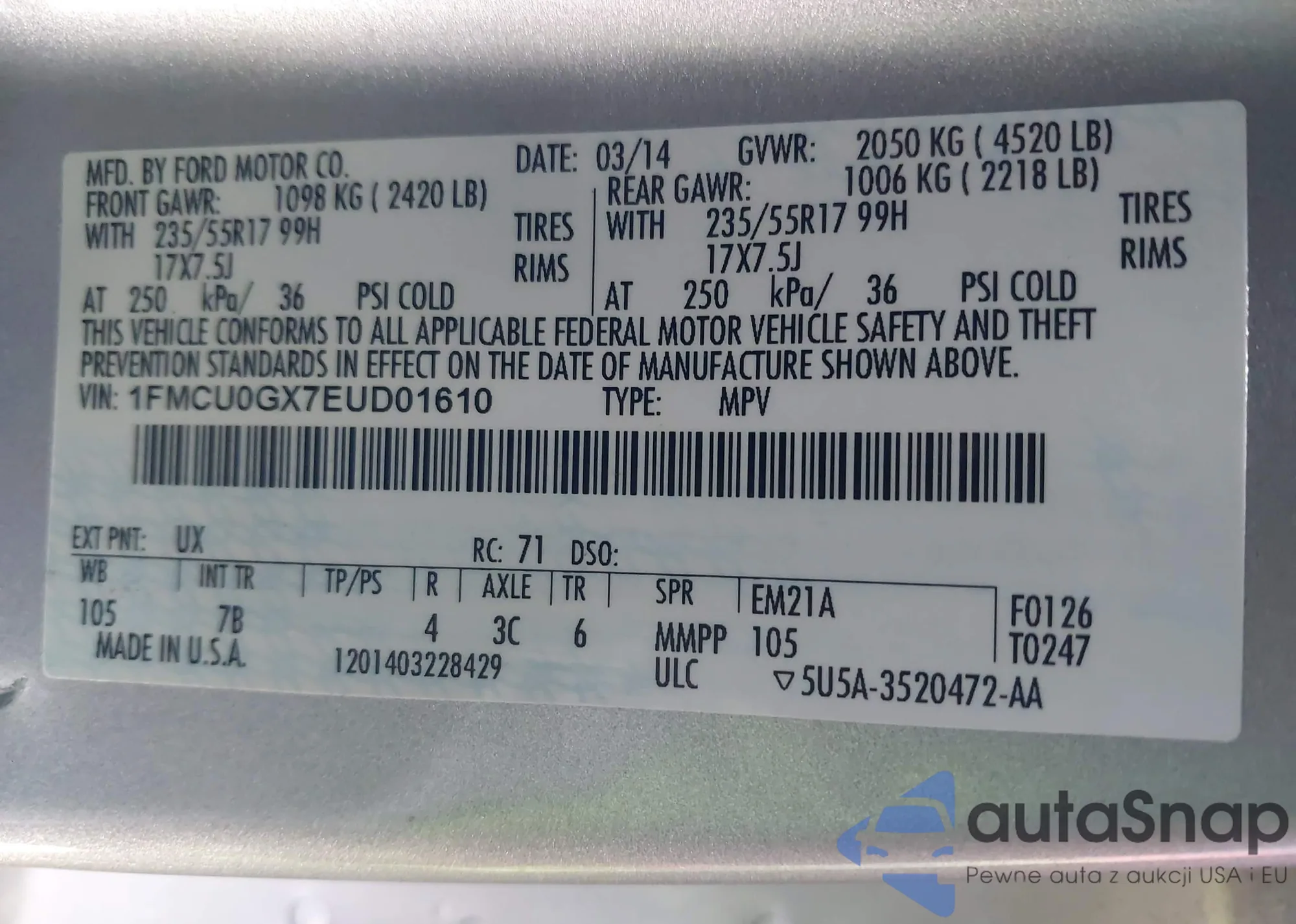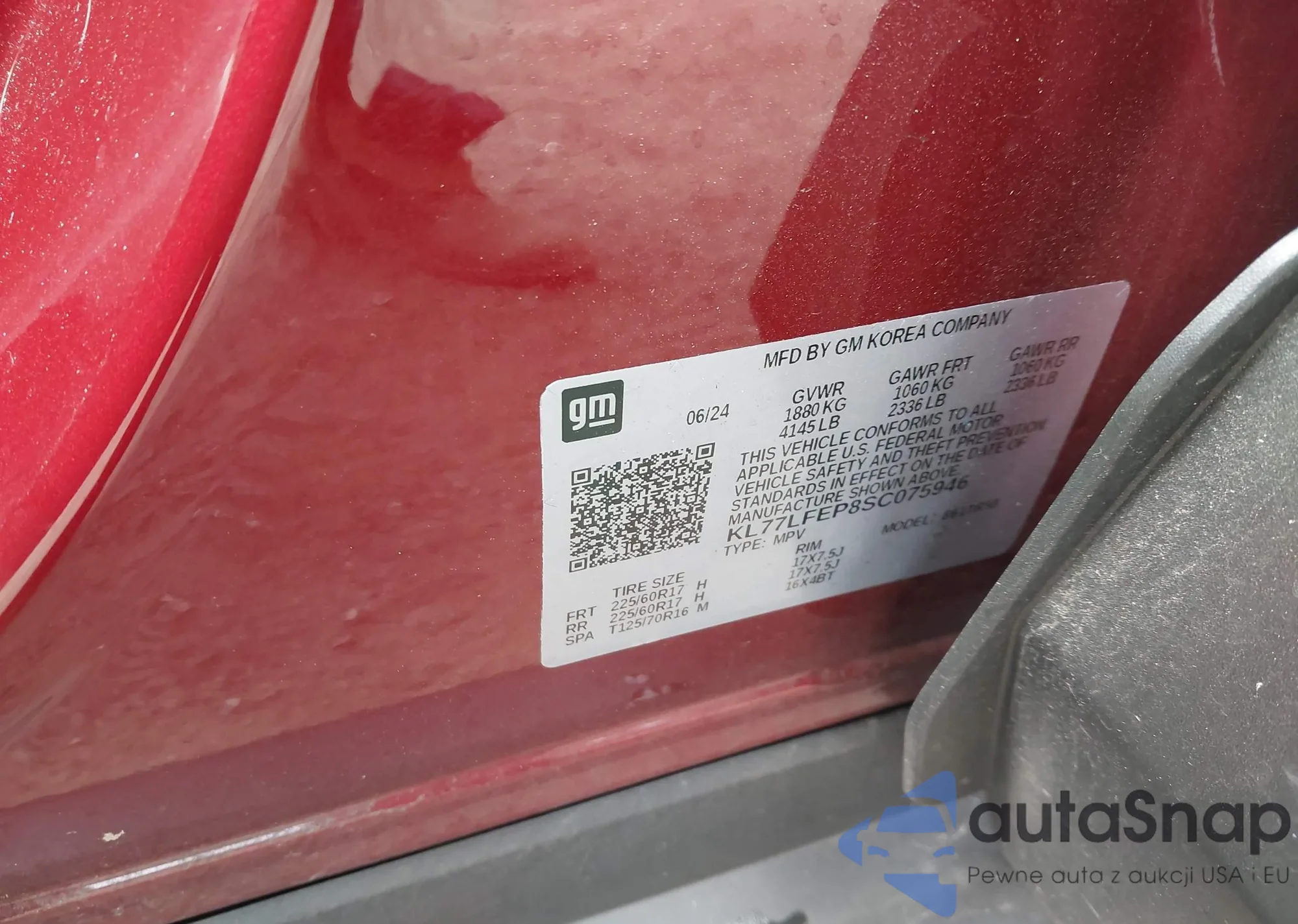 • VIN KL77LFEP8SC075946