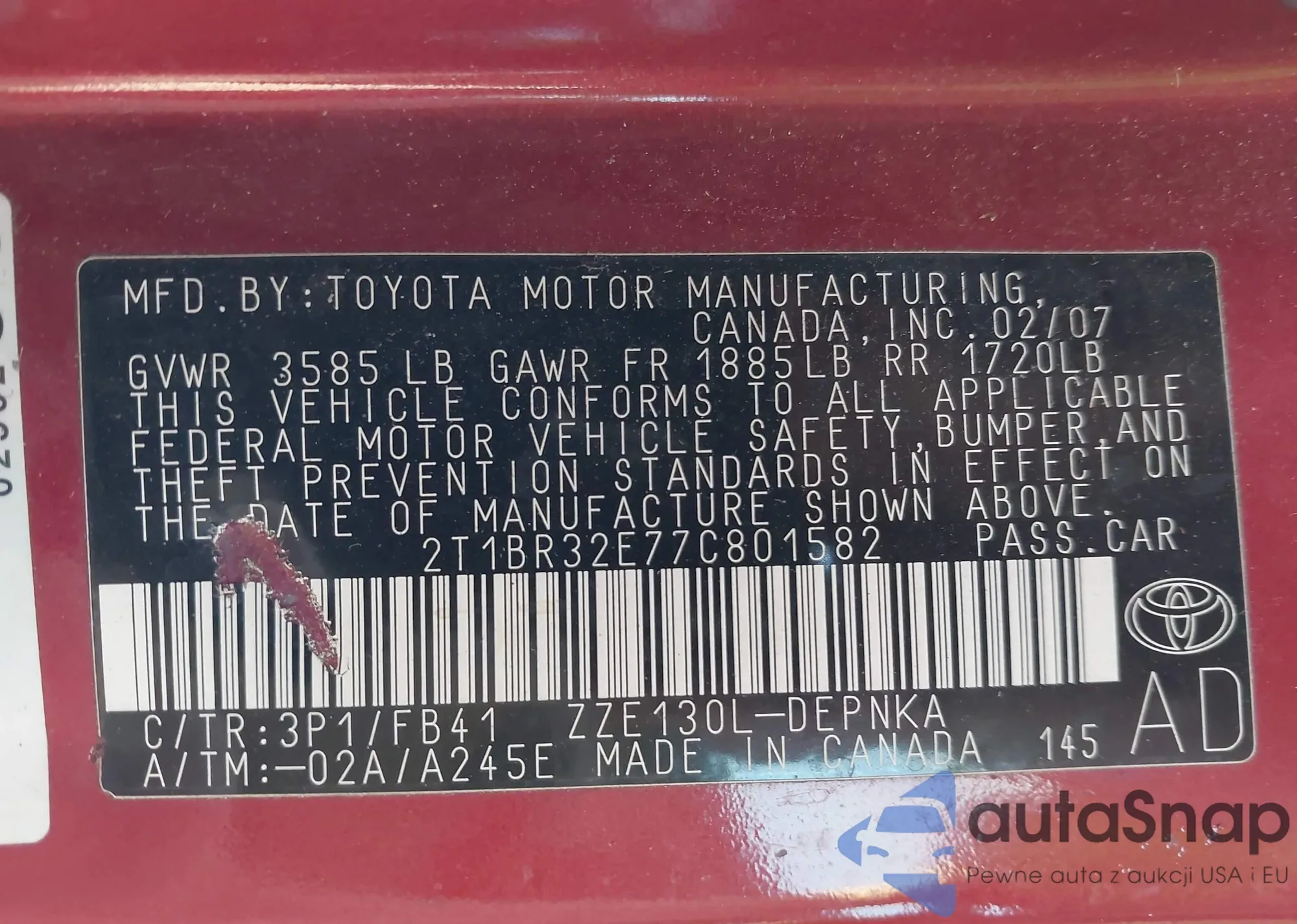 • VIN 2T1BR32E77C801582