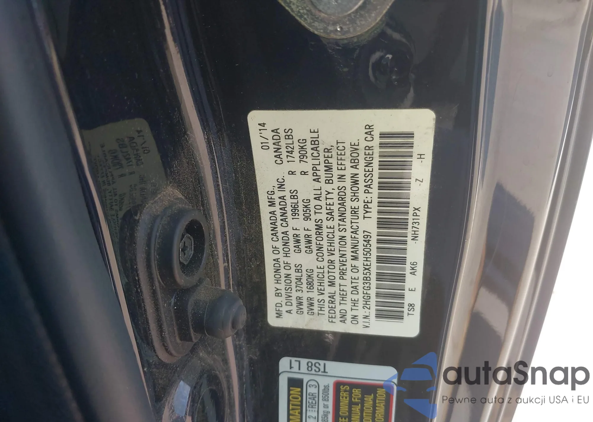 • VIN 2HGFG3B5XEH505497
