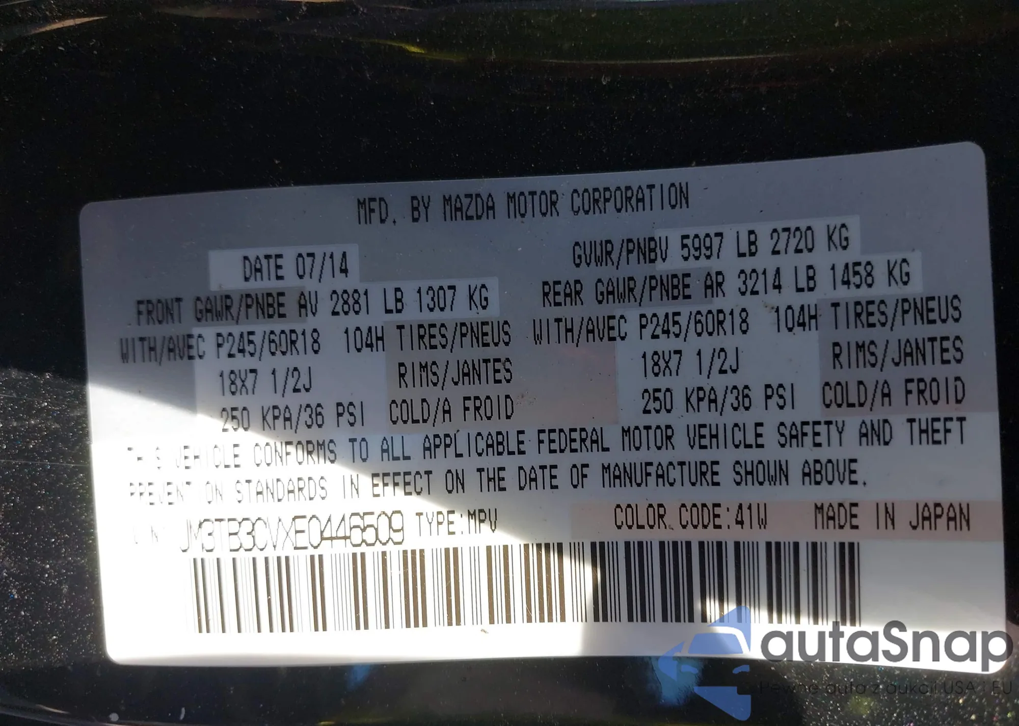 • VIN JM3TB3CVXE0446509