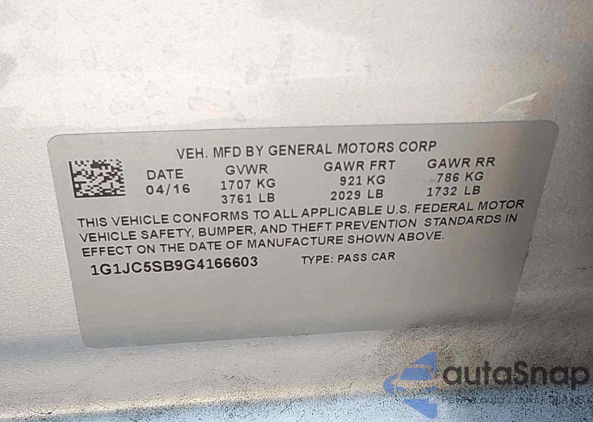 • VIN 1G1JC5SB9G4166603