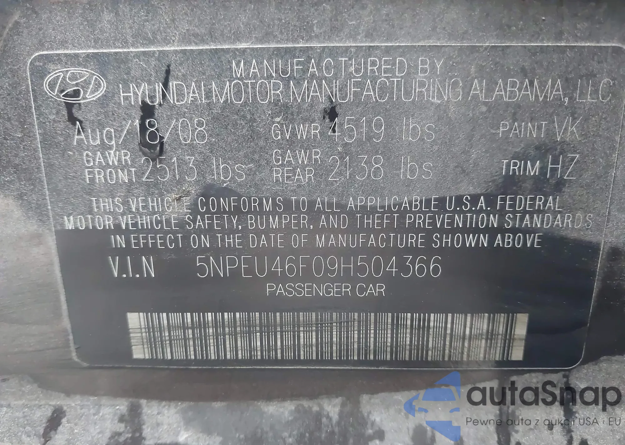 • VIN 5NPEU46F09H504366