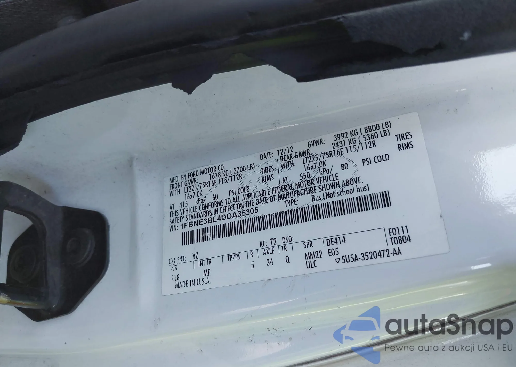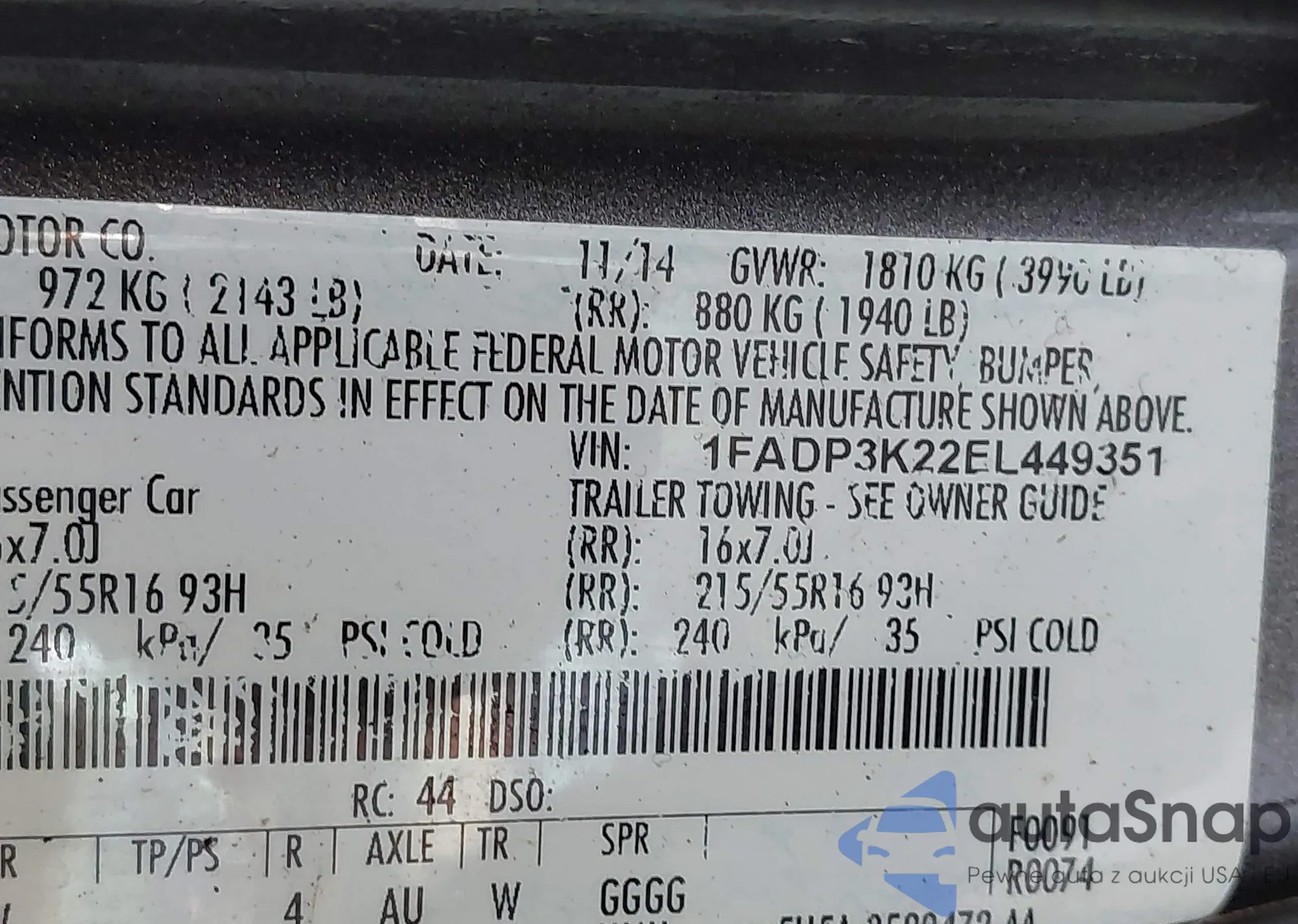 • VIN 1FADP3K24DL161930