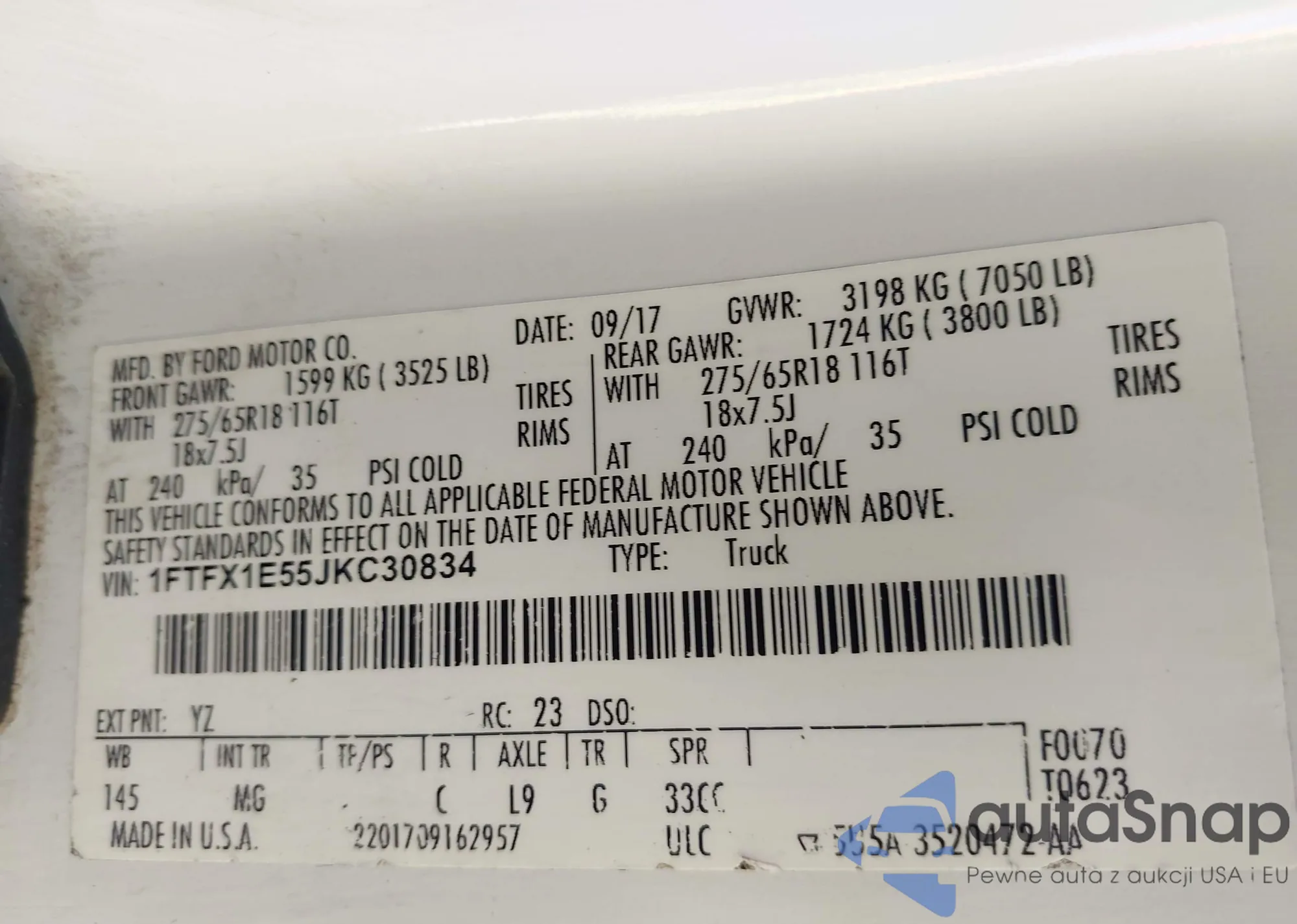 LOT: 43320333 VIN: 1FTFX1E55JKC30834