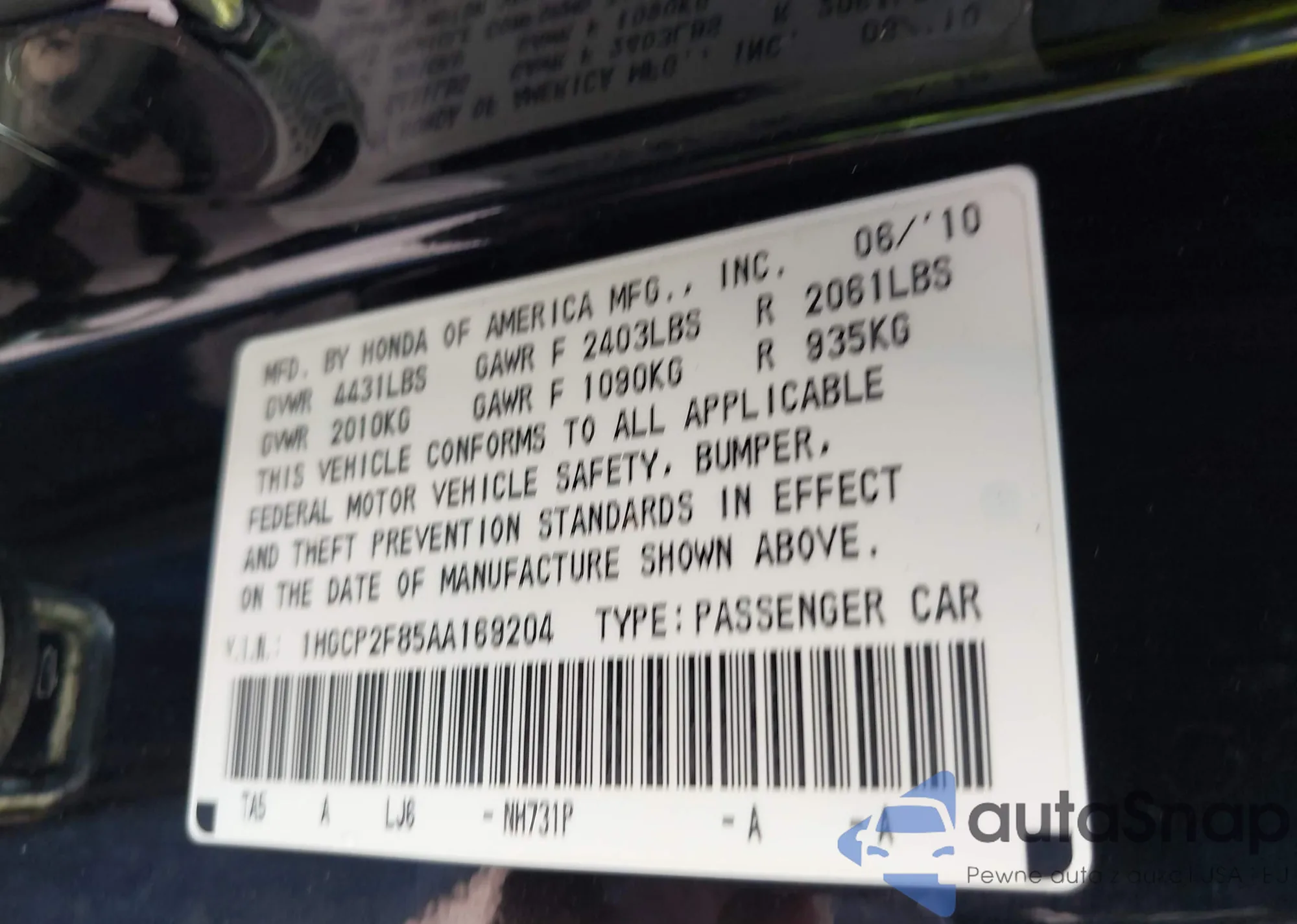 • VIN 19XFC2F57GE204070