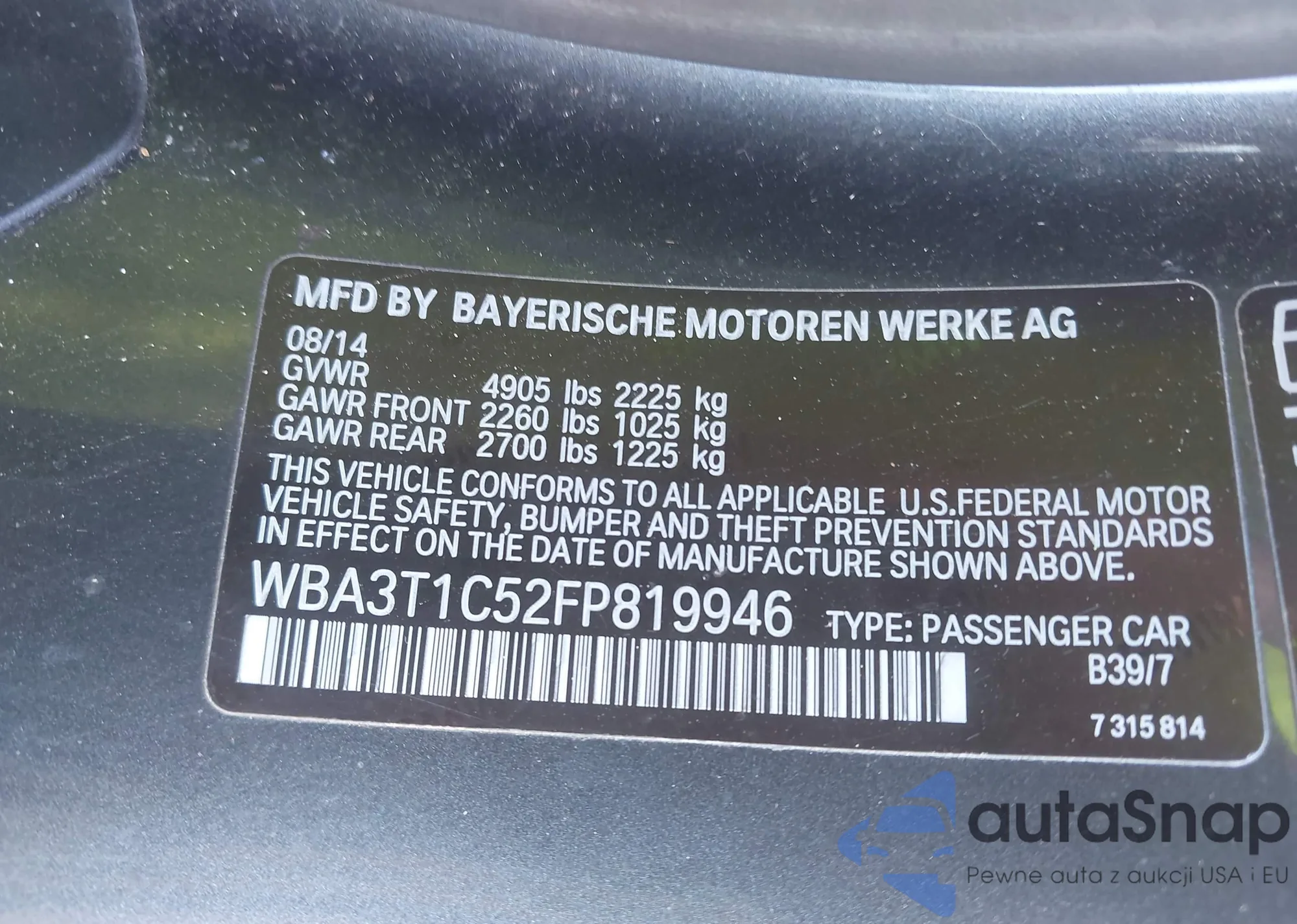 • VIN WBA3T1C52FP819946