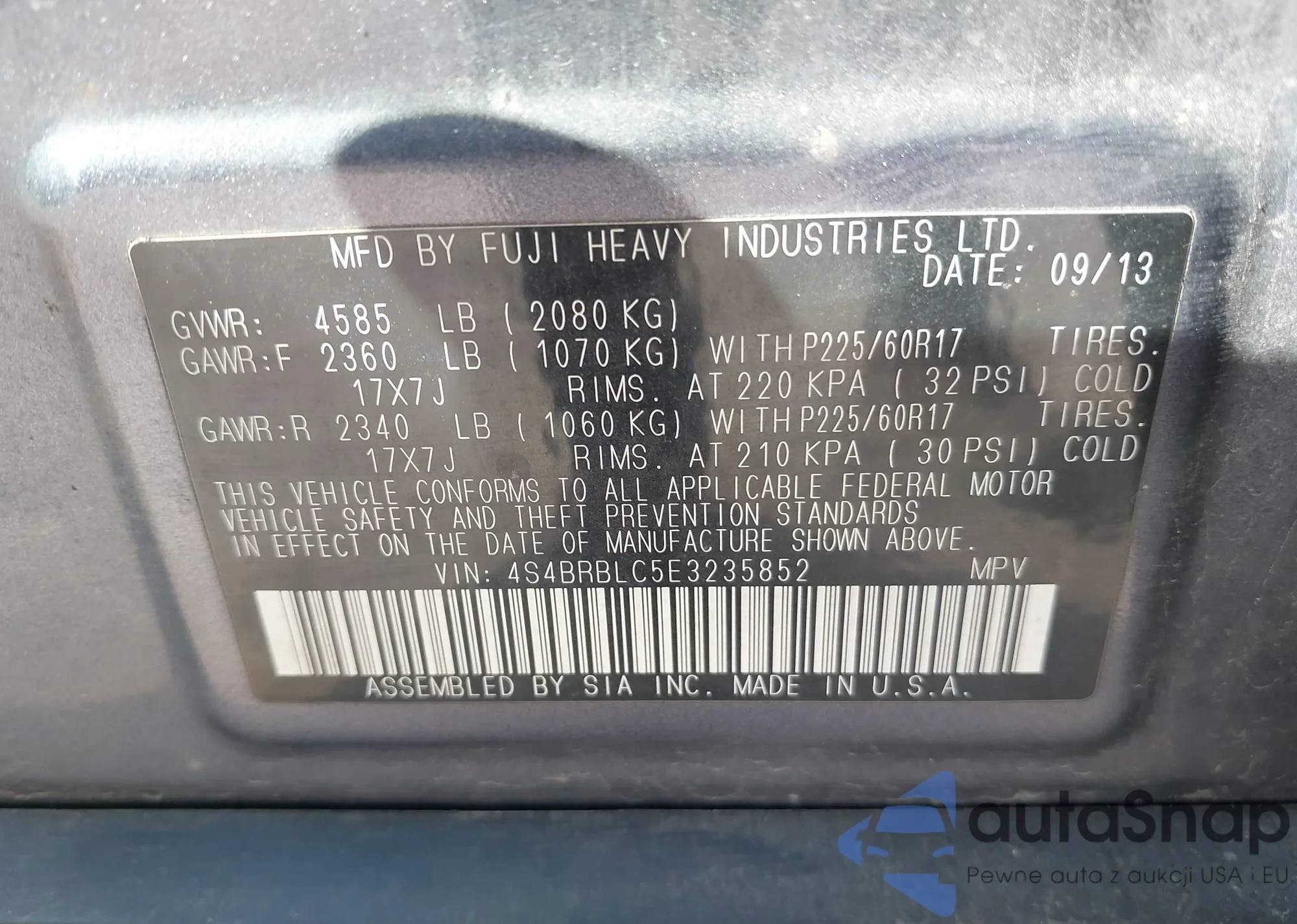 • VIN 4S4BRBLC5E3235852