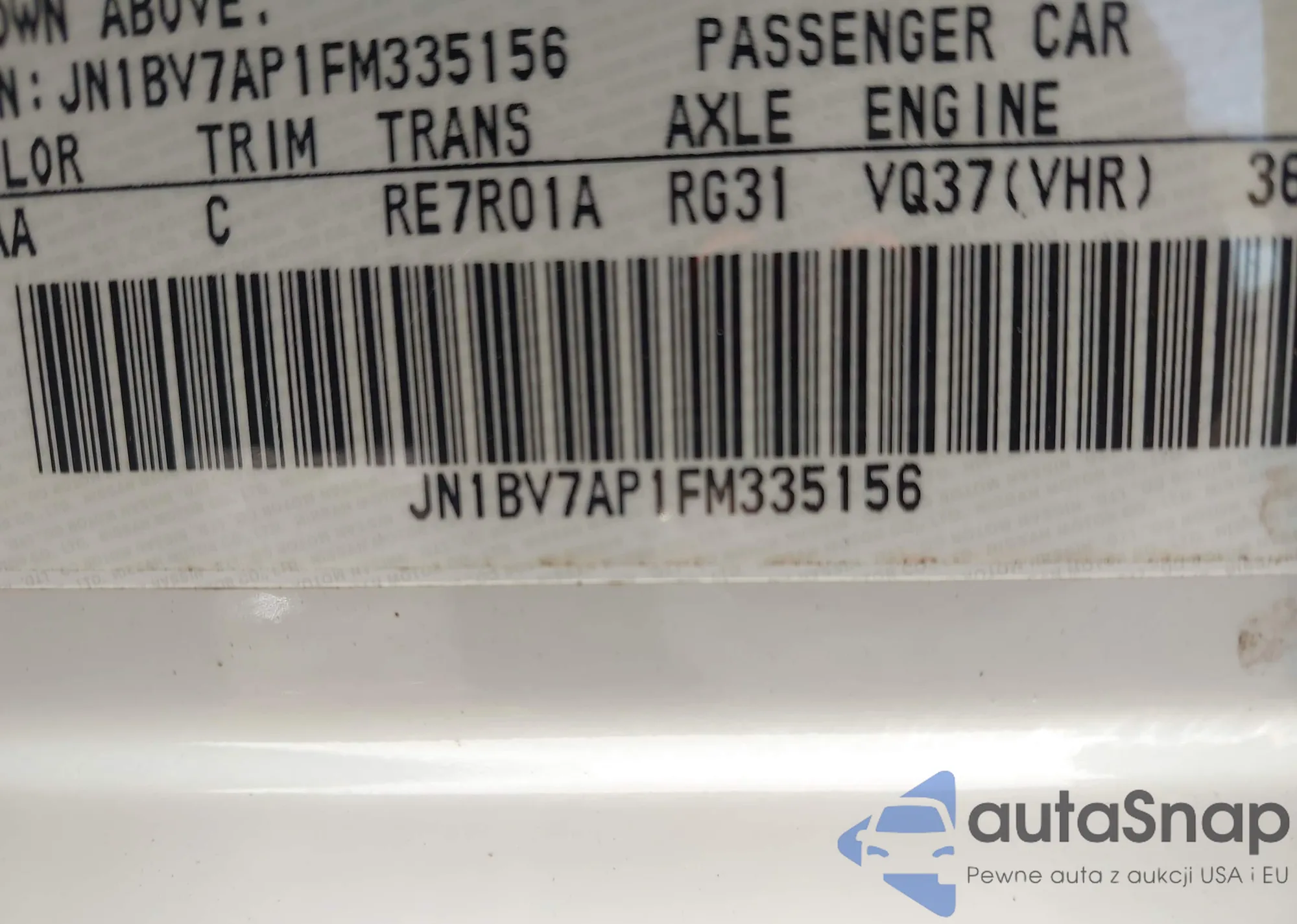 LOT: 43438455 VIN: WBA3T1C52FP819946