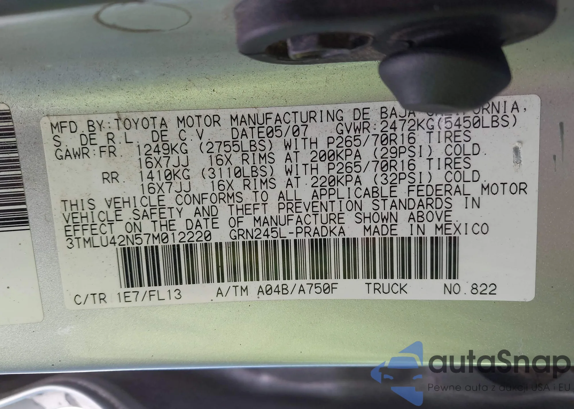 • VIN 3TMLU42N57M012220