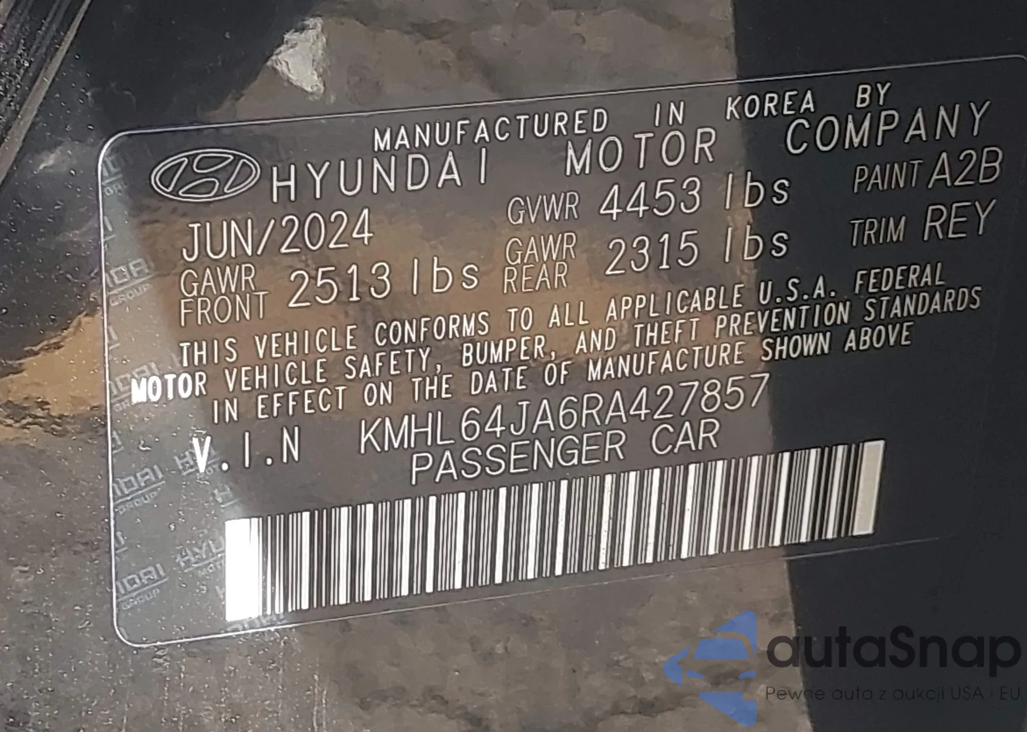 • VIN KMHL64JA6RA427857