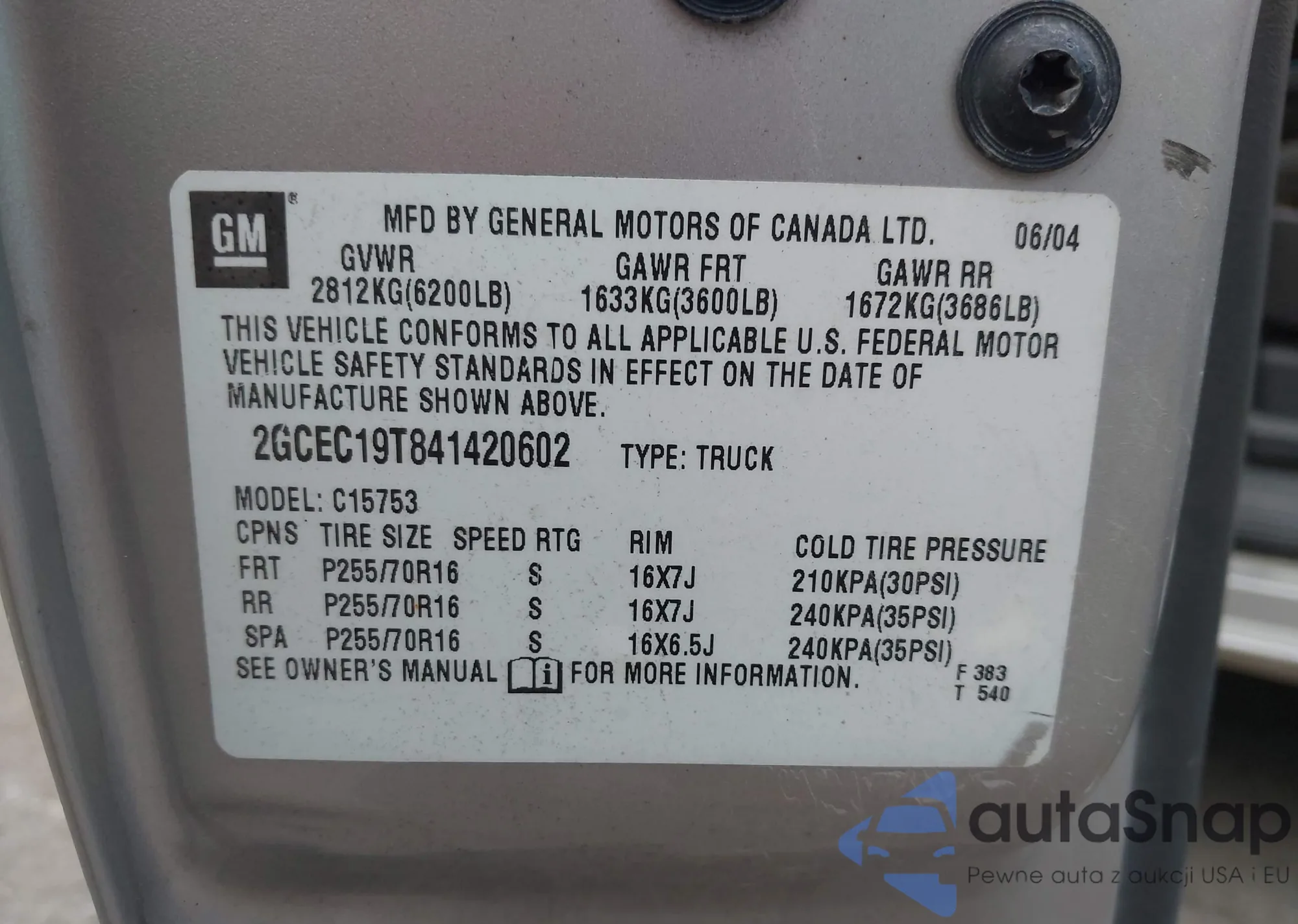 • VIN 2GCEC19T841420602