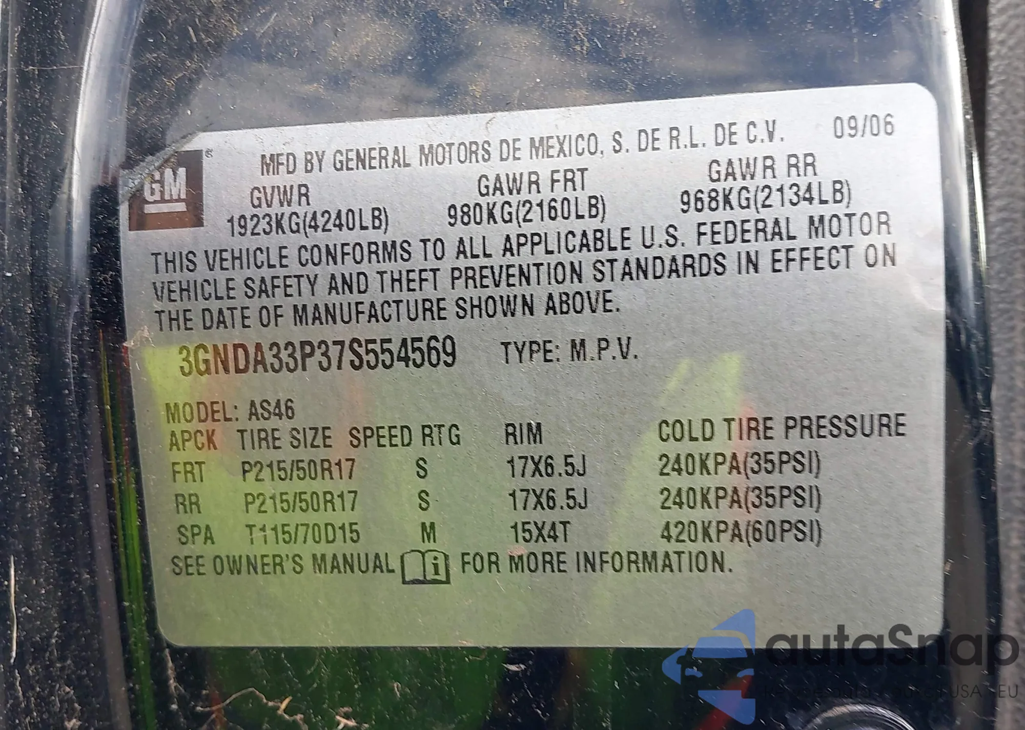 • VIN 3GNDA33P37S554569
