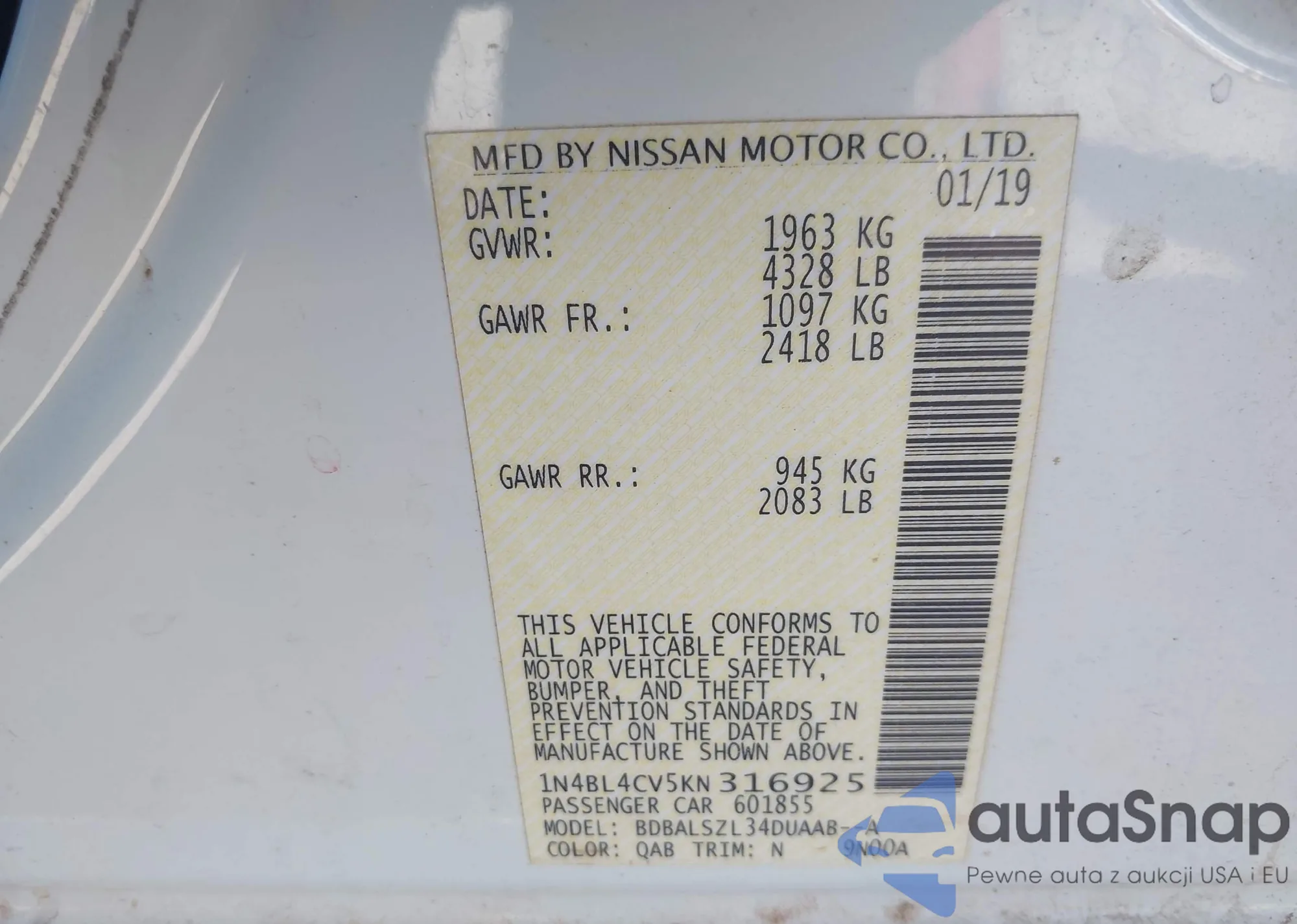 LOT: 43484793 VIN: 1N4AL21EX8N438935