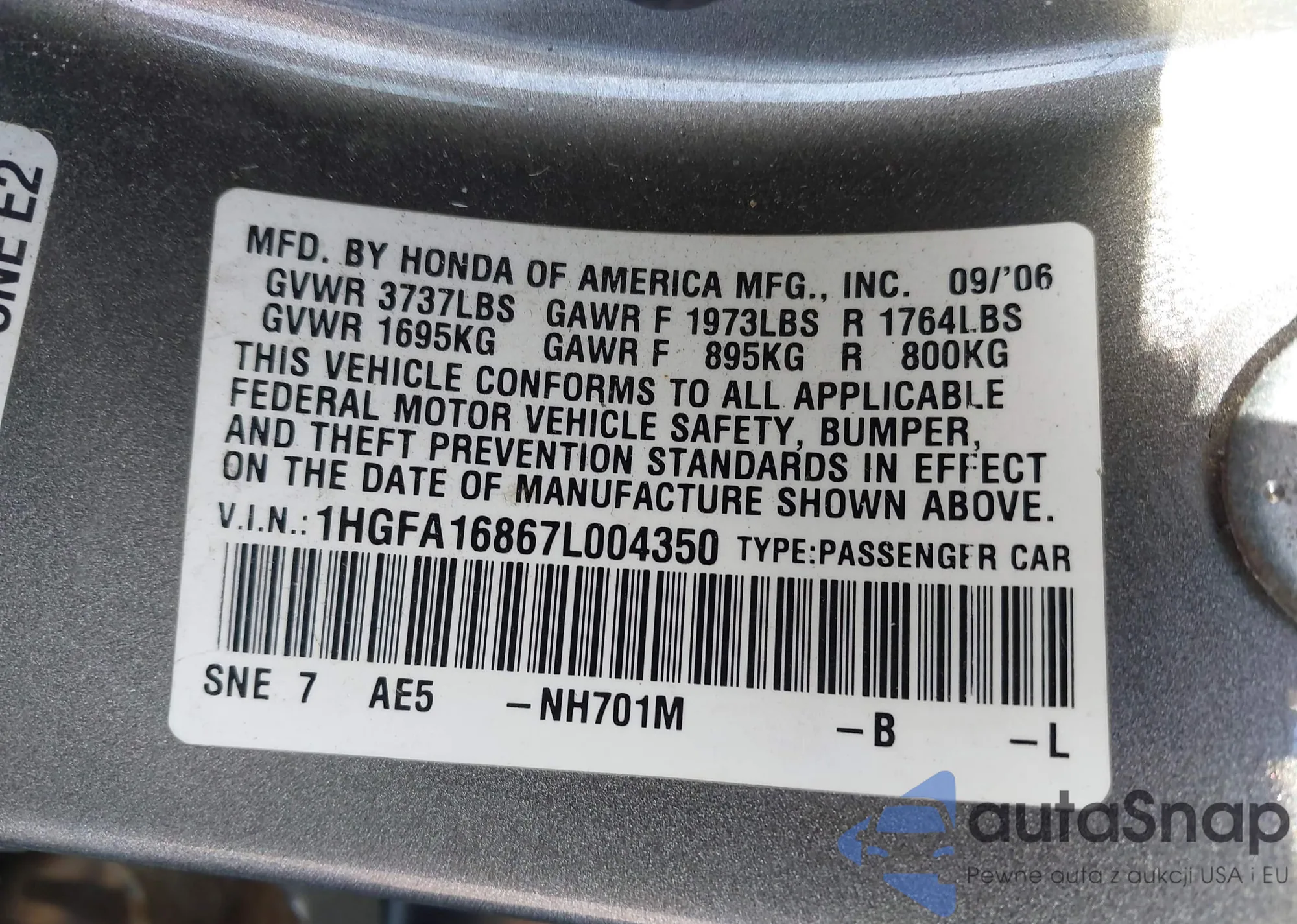 LOT: 43480052 VIN: 5J6YH28593L039108