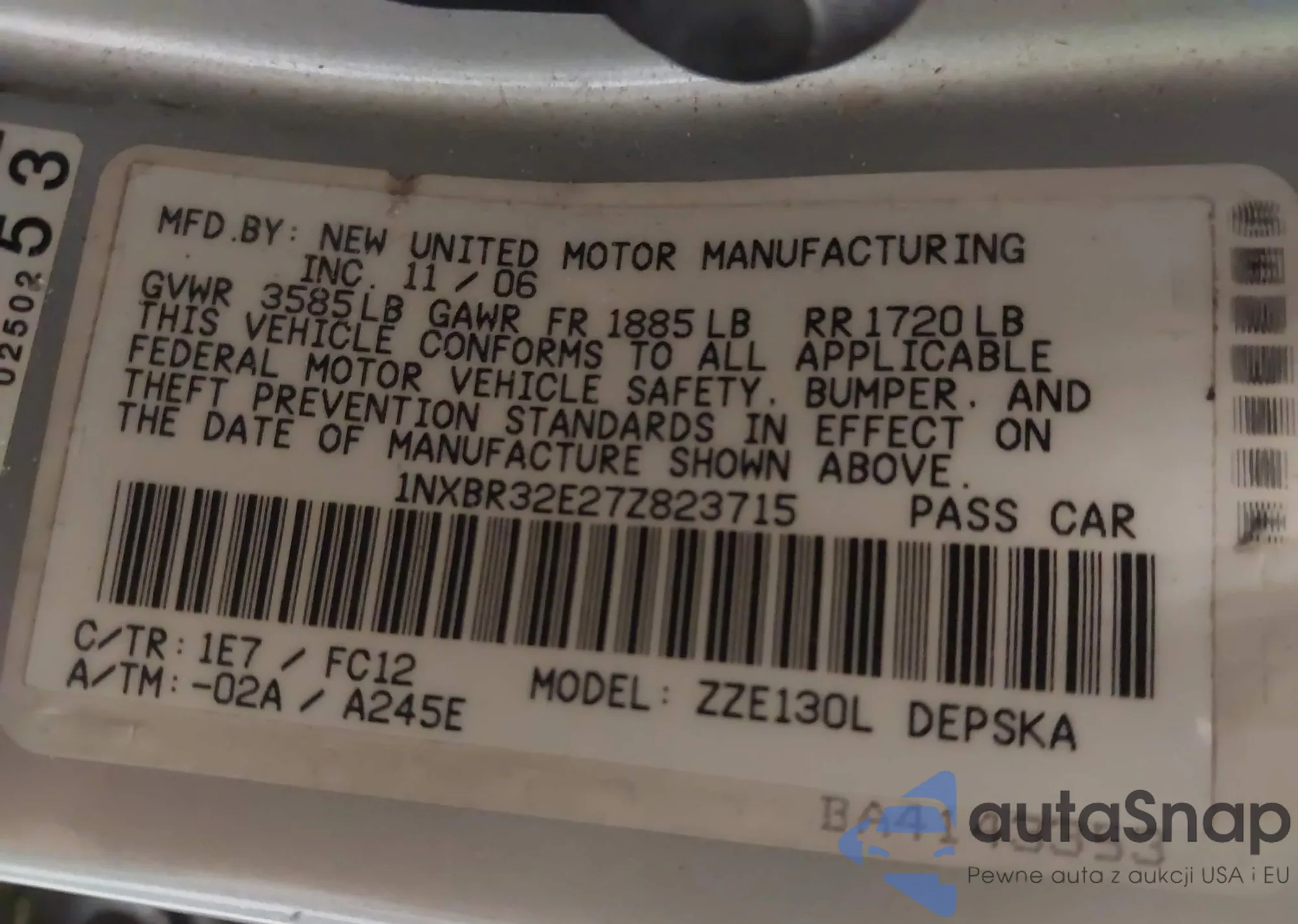 LOT: 43498176 VIN: JT8BH28F3V0069664