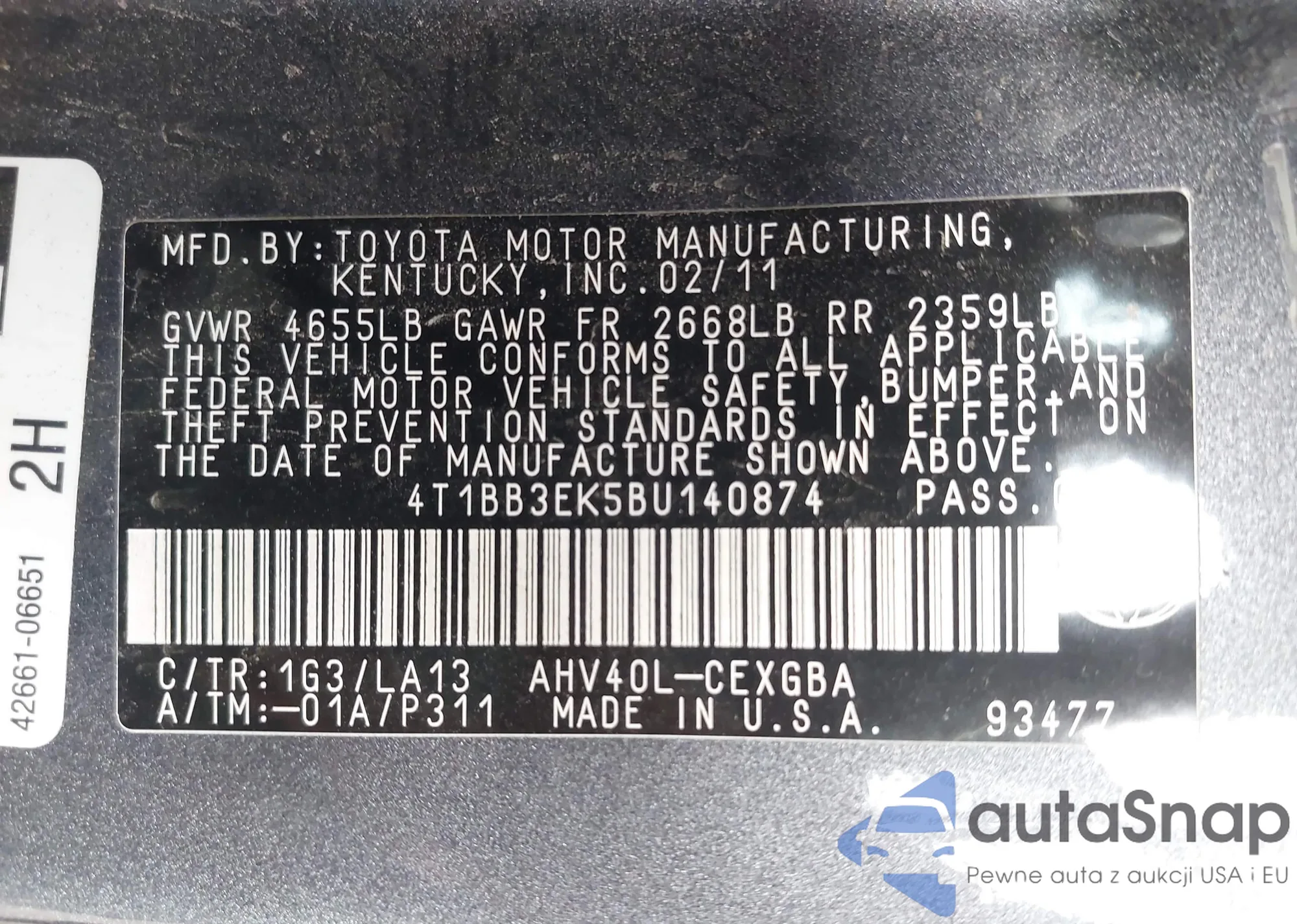 • VIN 4T1BF1FK2EU823028