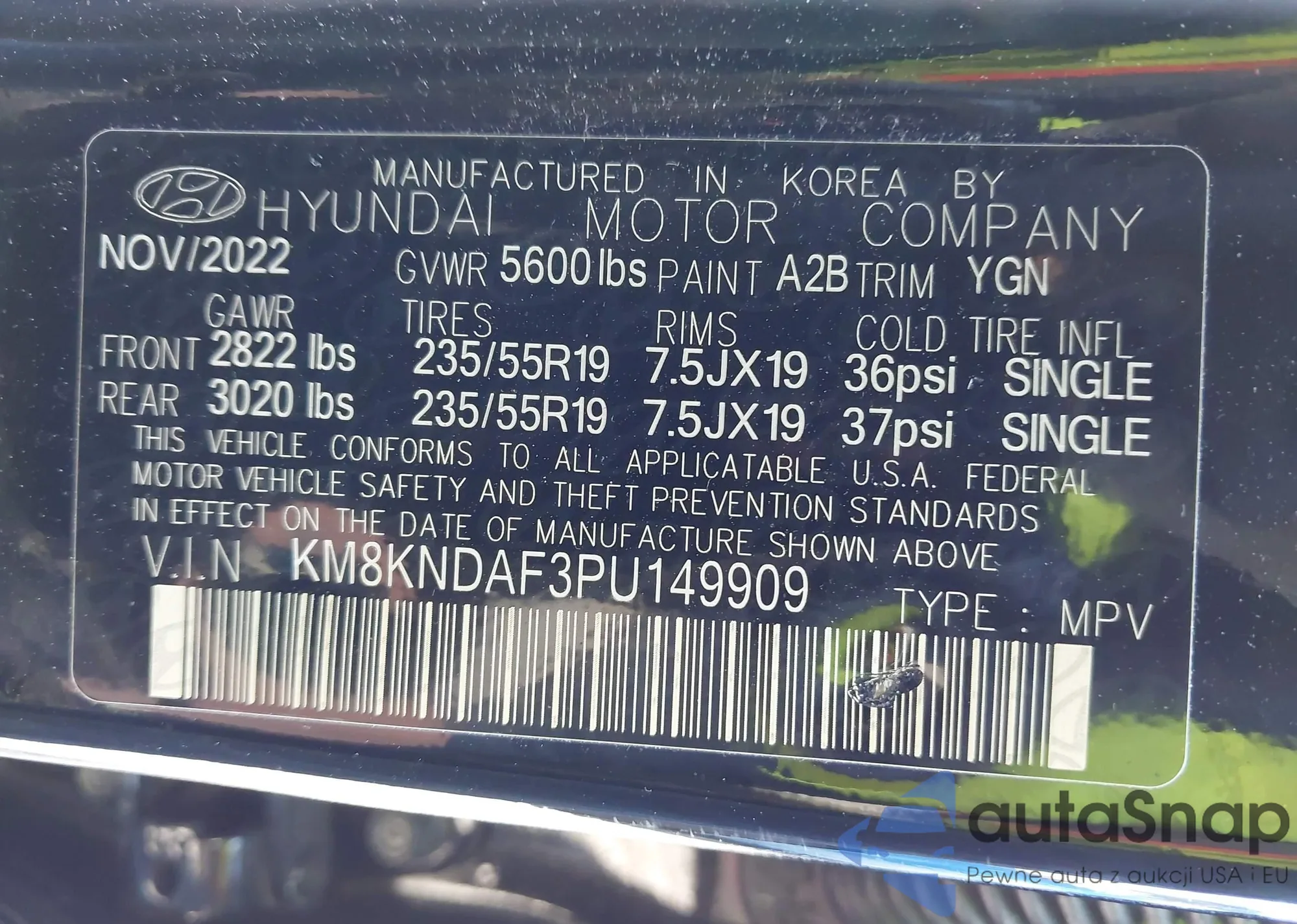 LOT: 43309155 VIN: KNDNB4H33R6328481