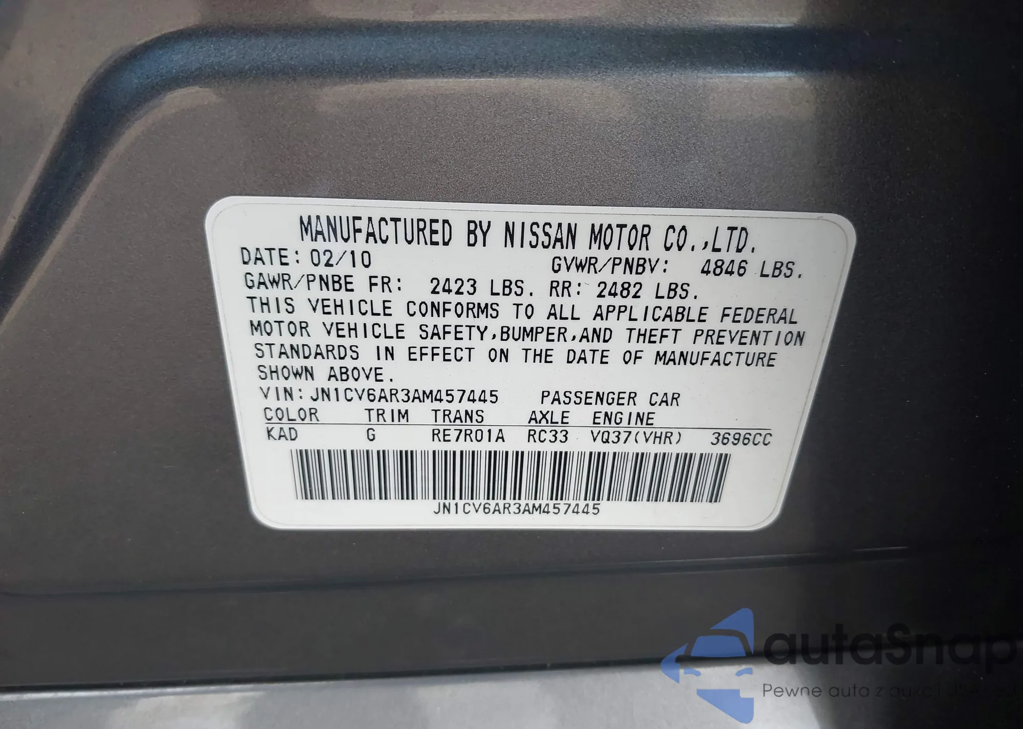 • VIN JN1CV6AR3AM457445