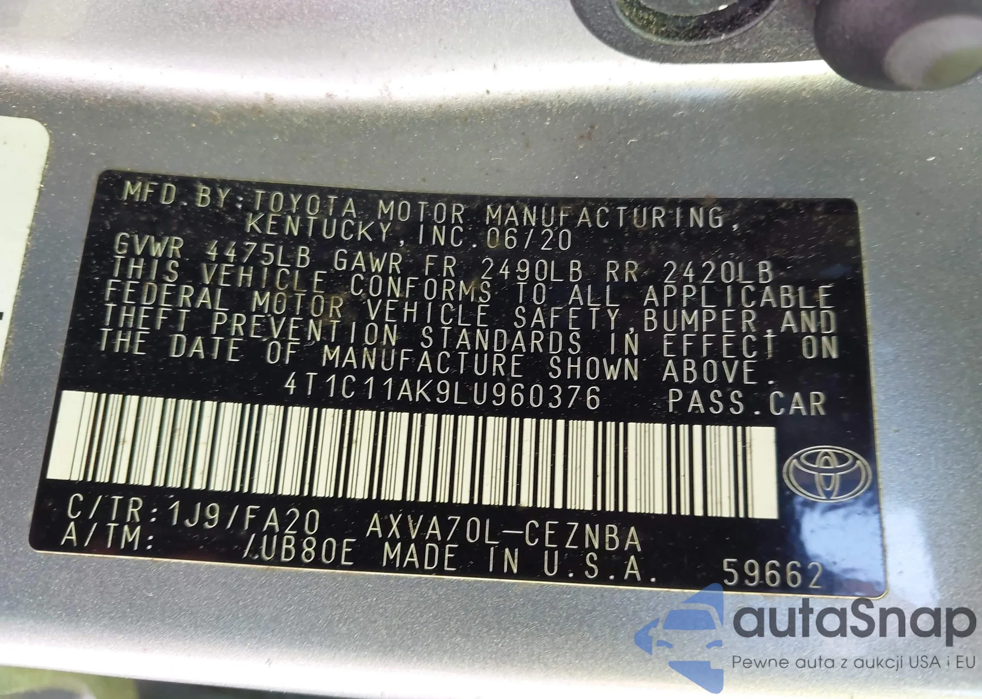 LOT: 43523020 VIN: JTDKN3DU3B0323454