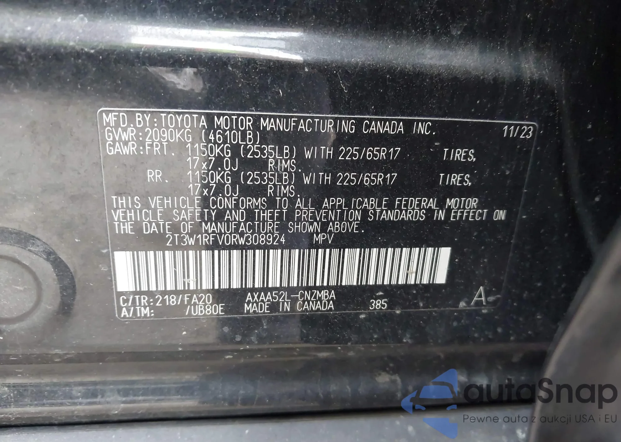 • VIN 2T3W1RFV0RW308924