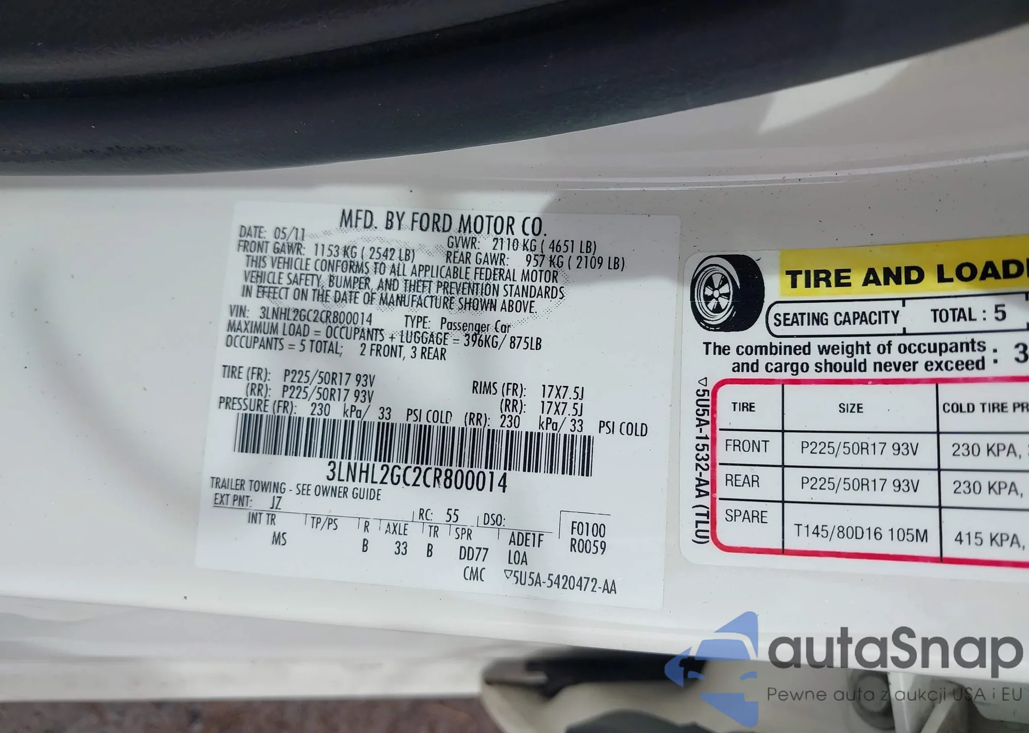 • VIN 3LNHL2GC2CR800014