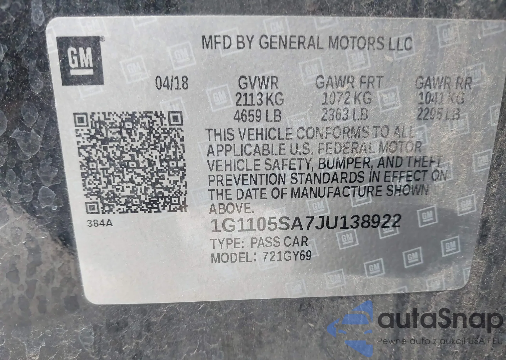 • VIN 1G1105SA7JU138922