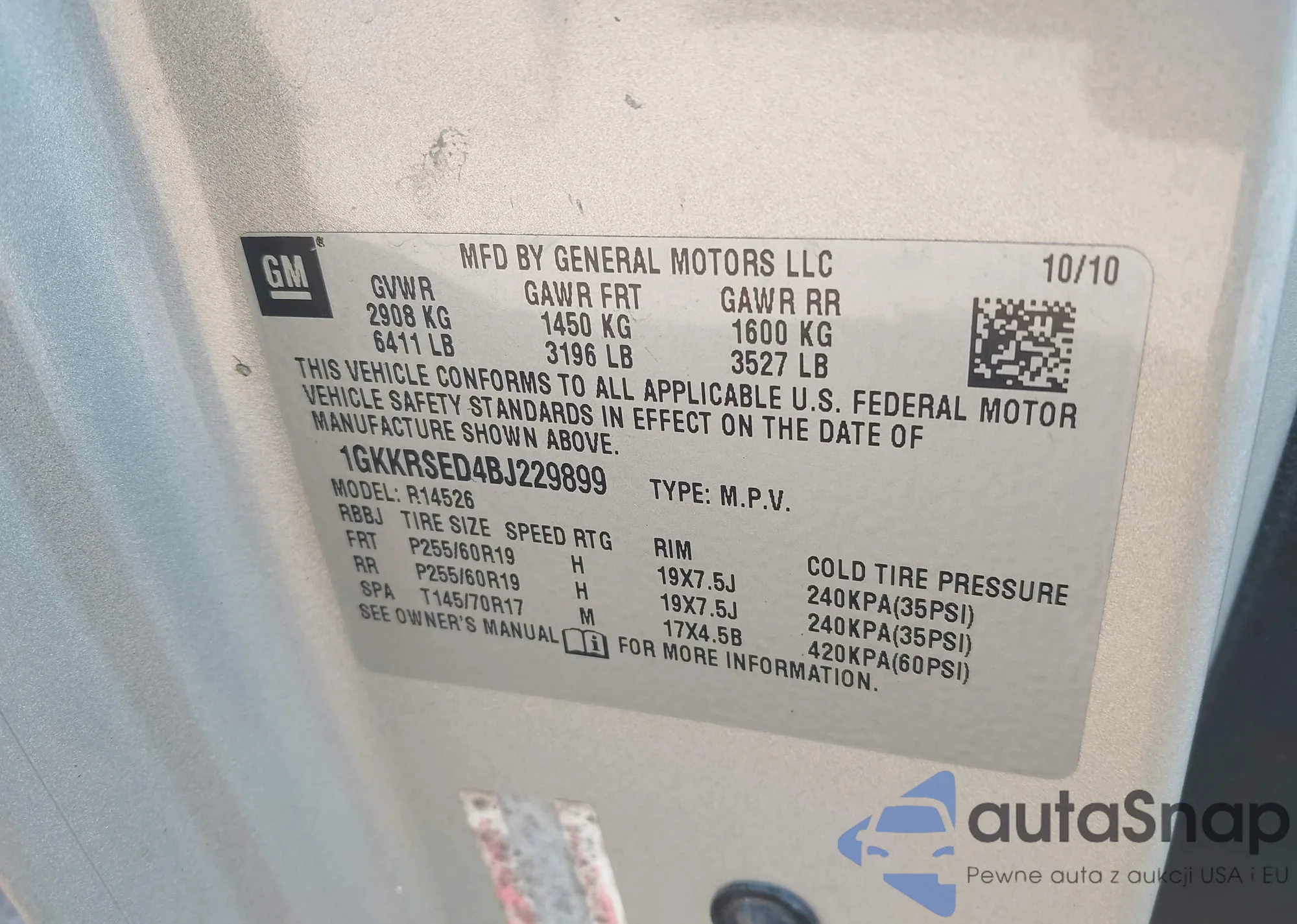 LOT: 43310893 VIN: 1GNKRGKD3GJ262548