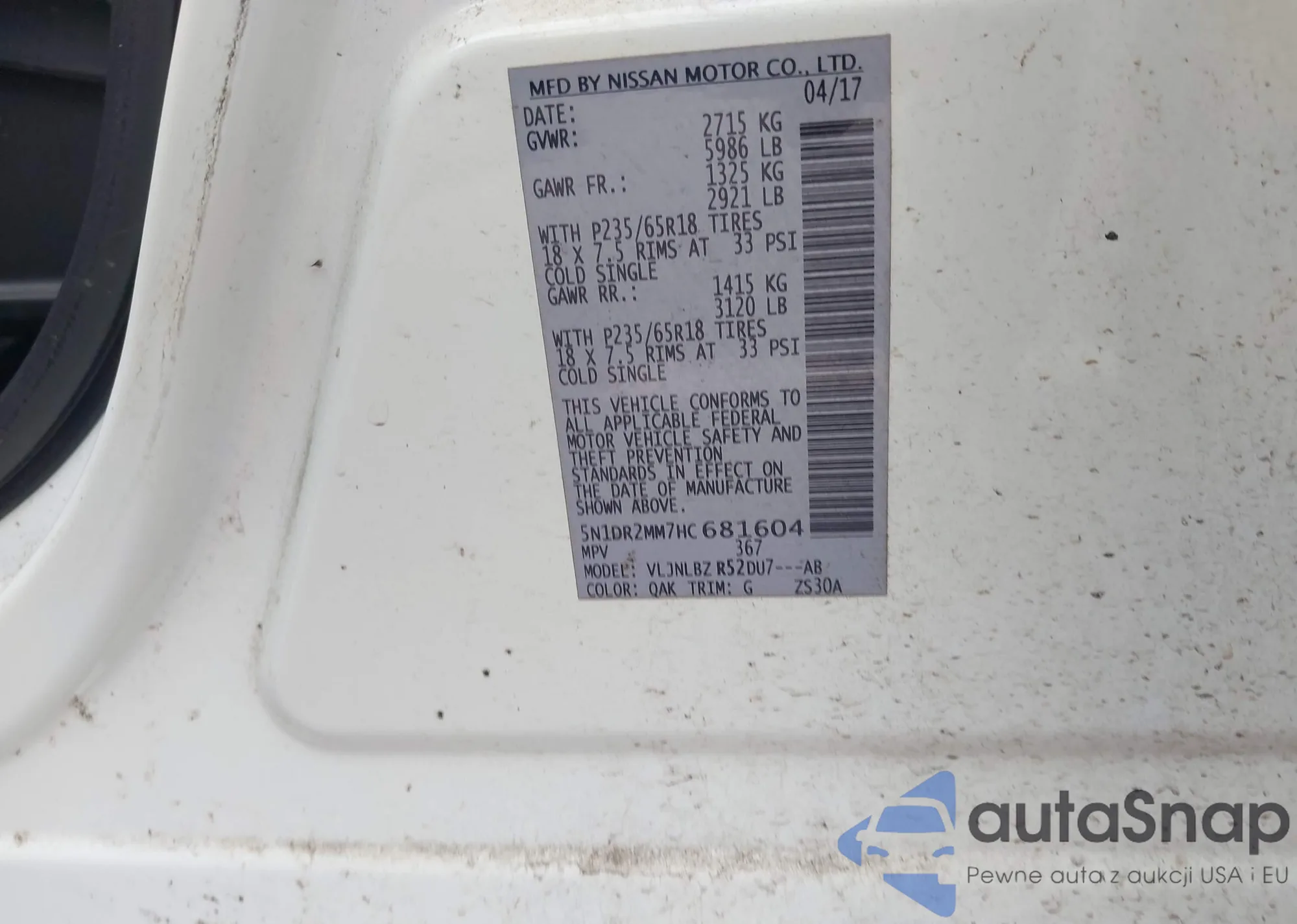 • VIN 5N1DR2MM7HC681604