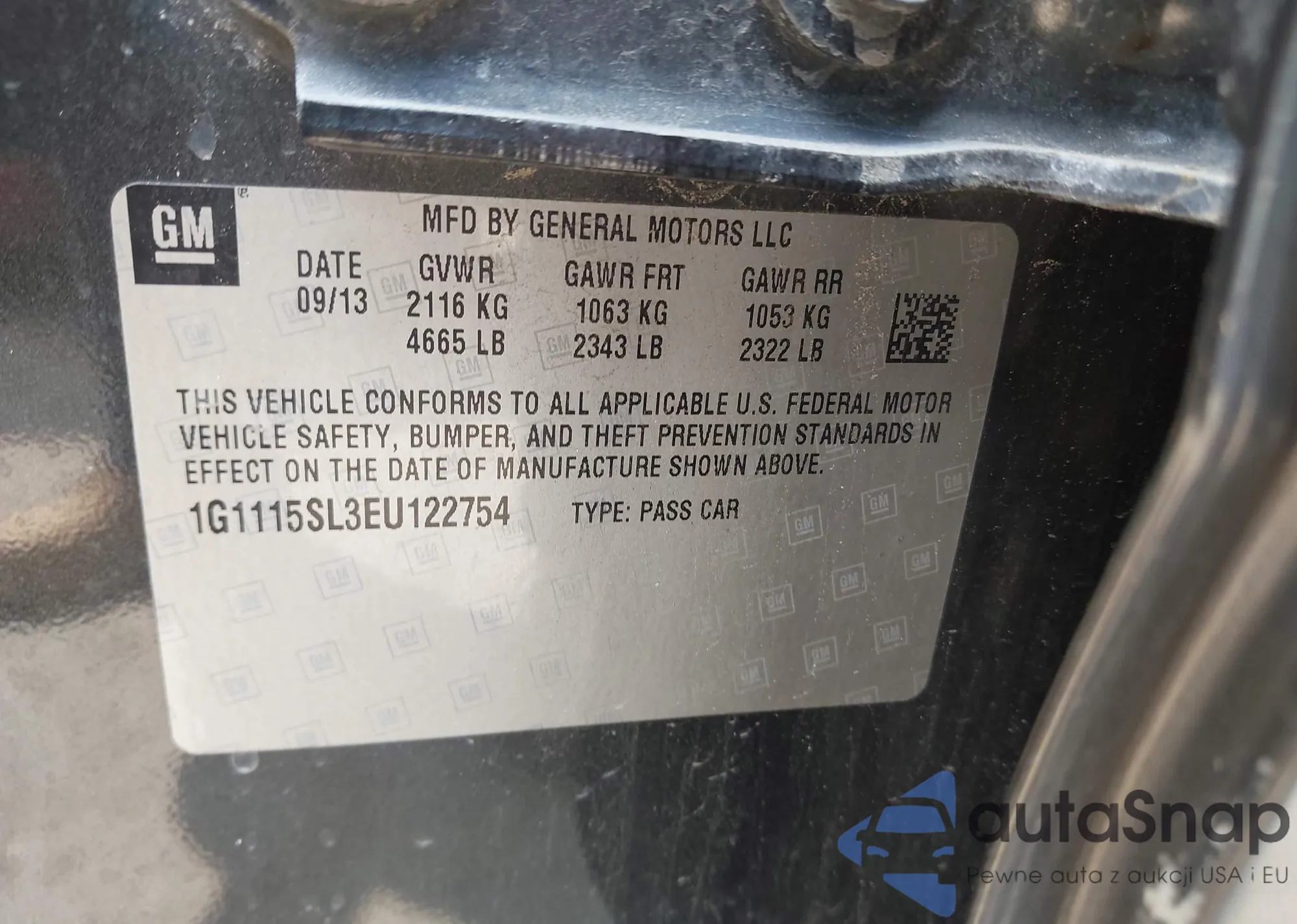 • VIN 1G1115SL3EU122754