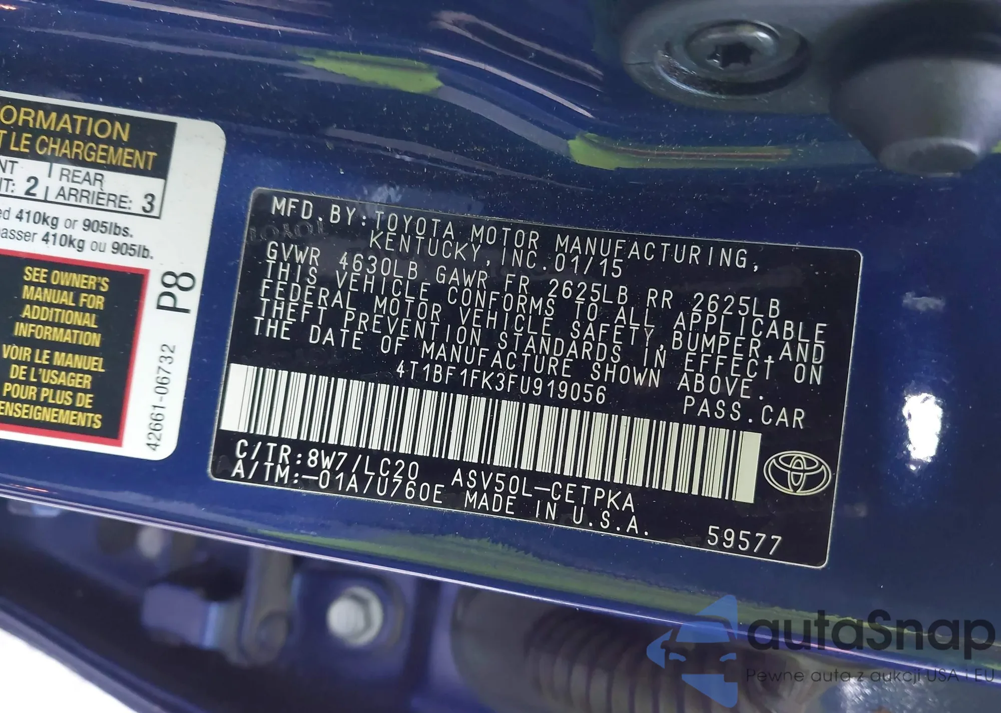• VIN 4T1BF1FK4EU739728