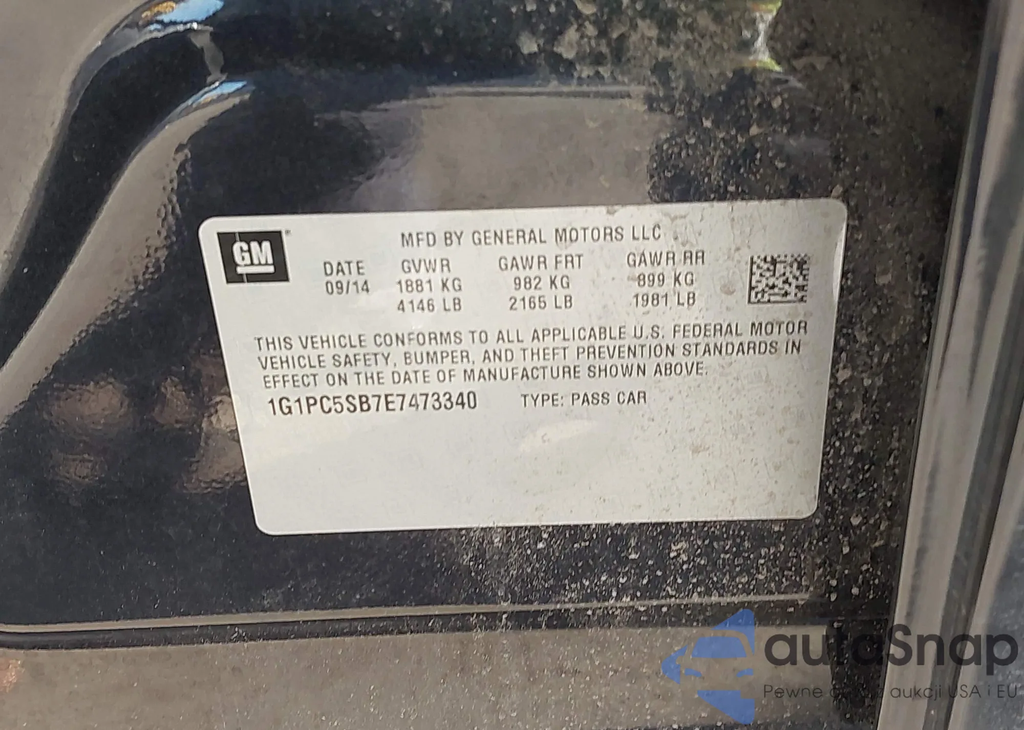 LOT: 43394892 VIN: 2G1WC57M591247466