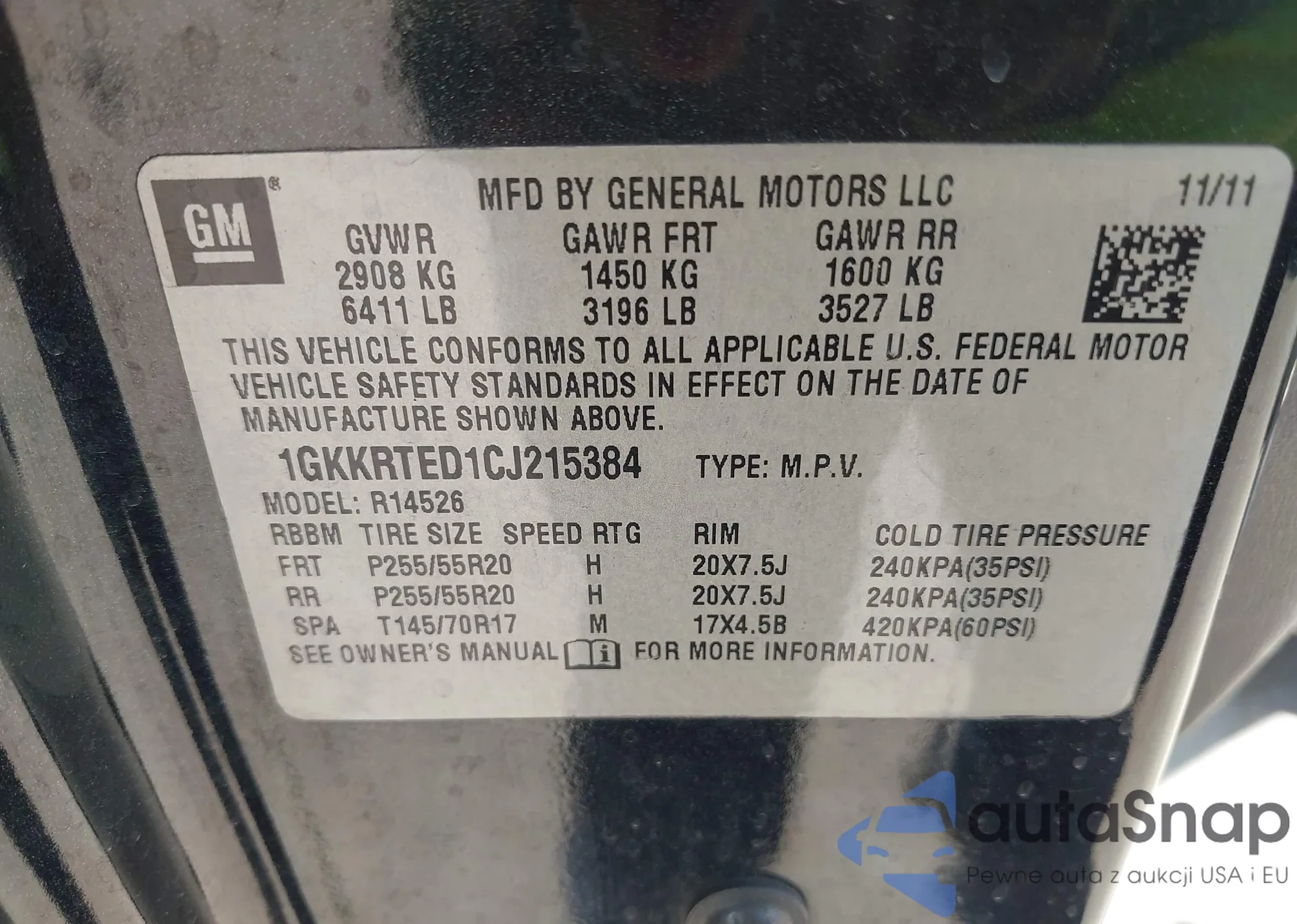 • VIN 1GKKRTED1CJ215384