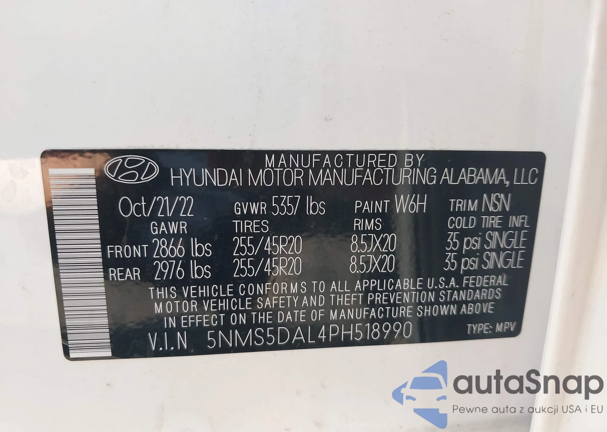 • VIN 5NMS5DAL4PH518990