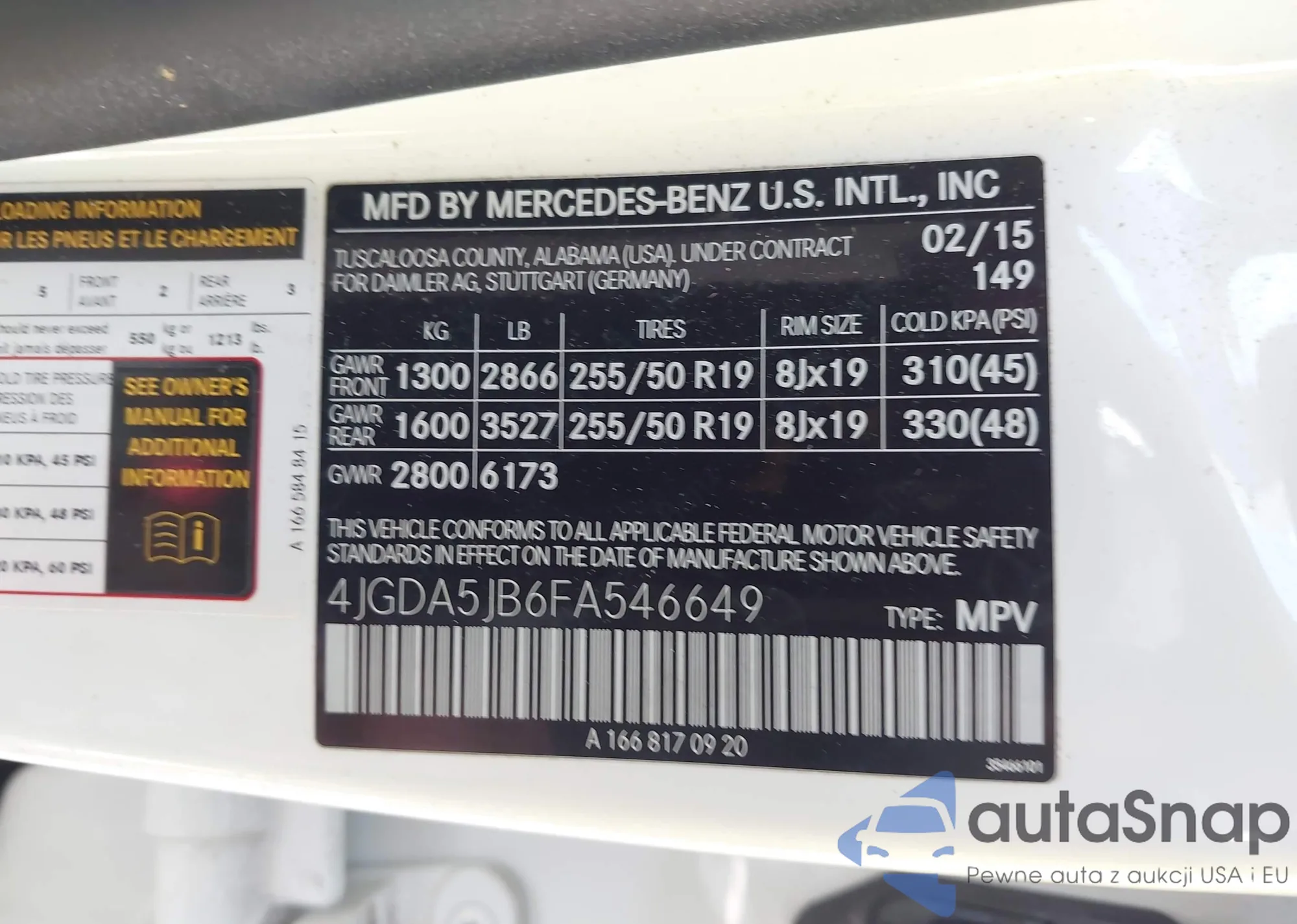 • VIN 4JGDA5JB6FA546649