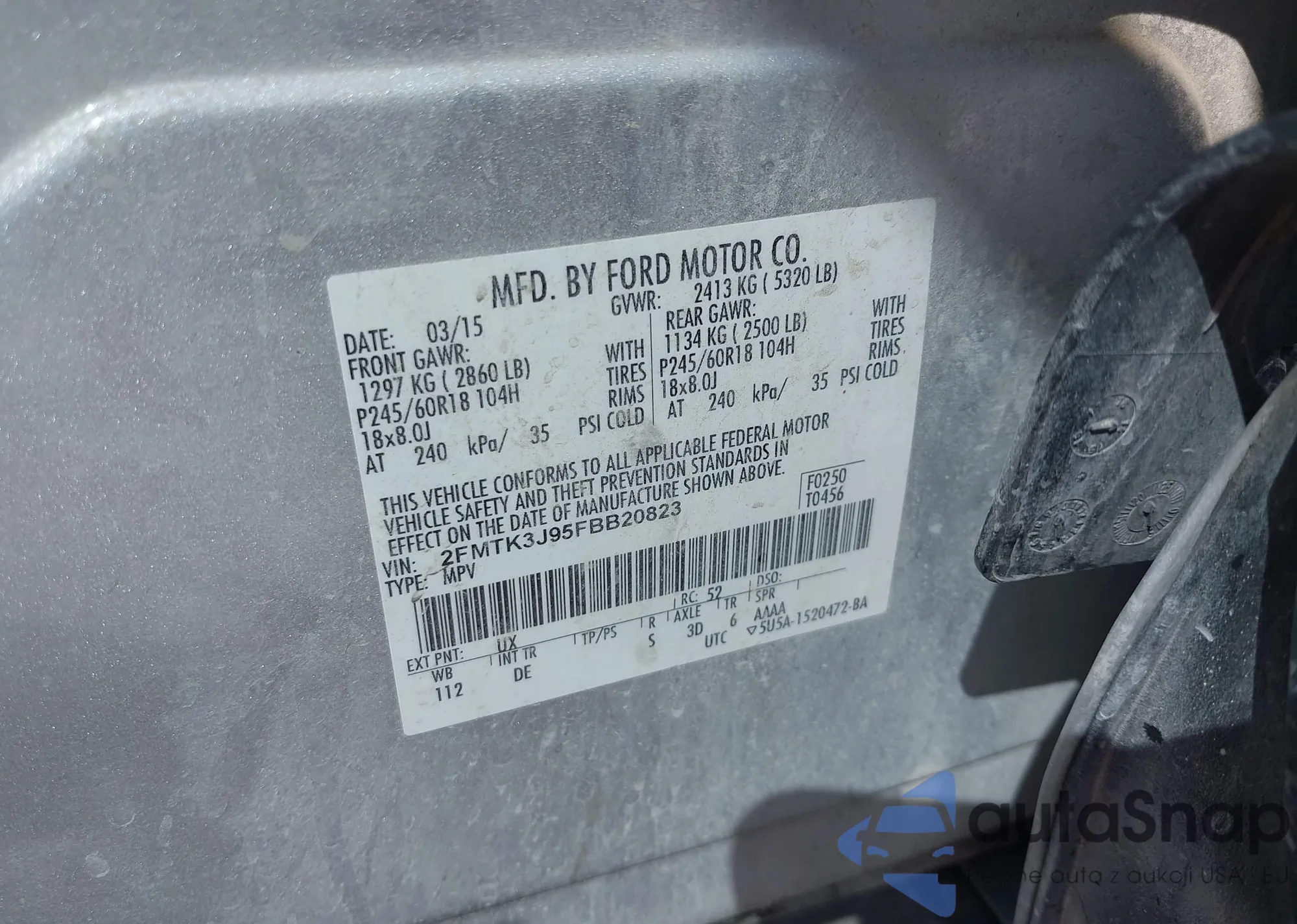 LOT: 43365305 VIN: 2FMTK3J95FBB20823