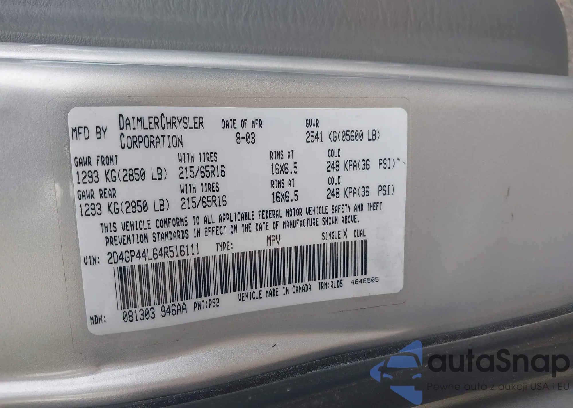 LOT: 43330877 VIN: 2D4GP44L64R516111