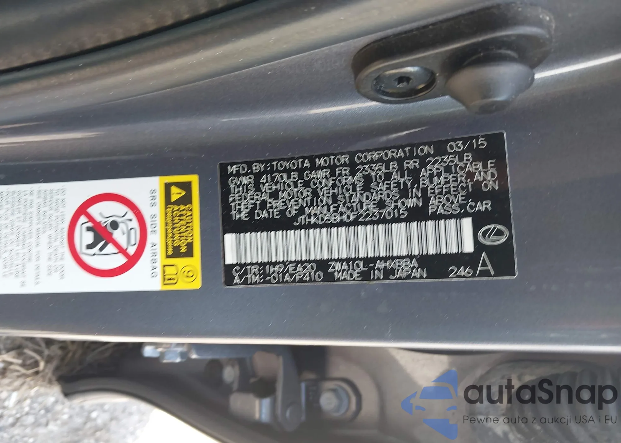 LOT: 43330560 VIN: JTHKD5BH0F2237015