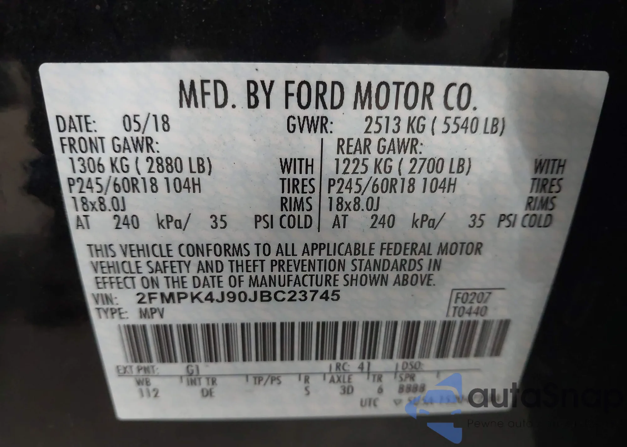 • VIN 2FMPK4J90JBC23745