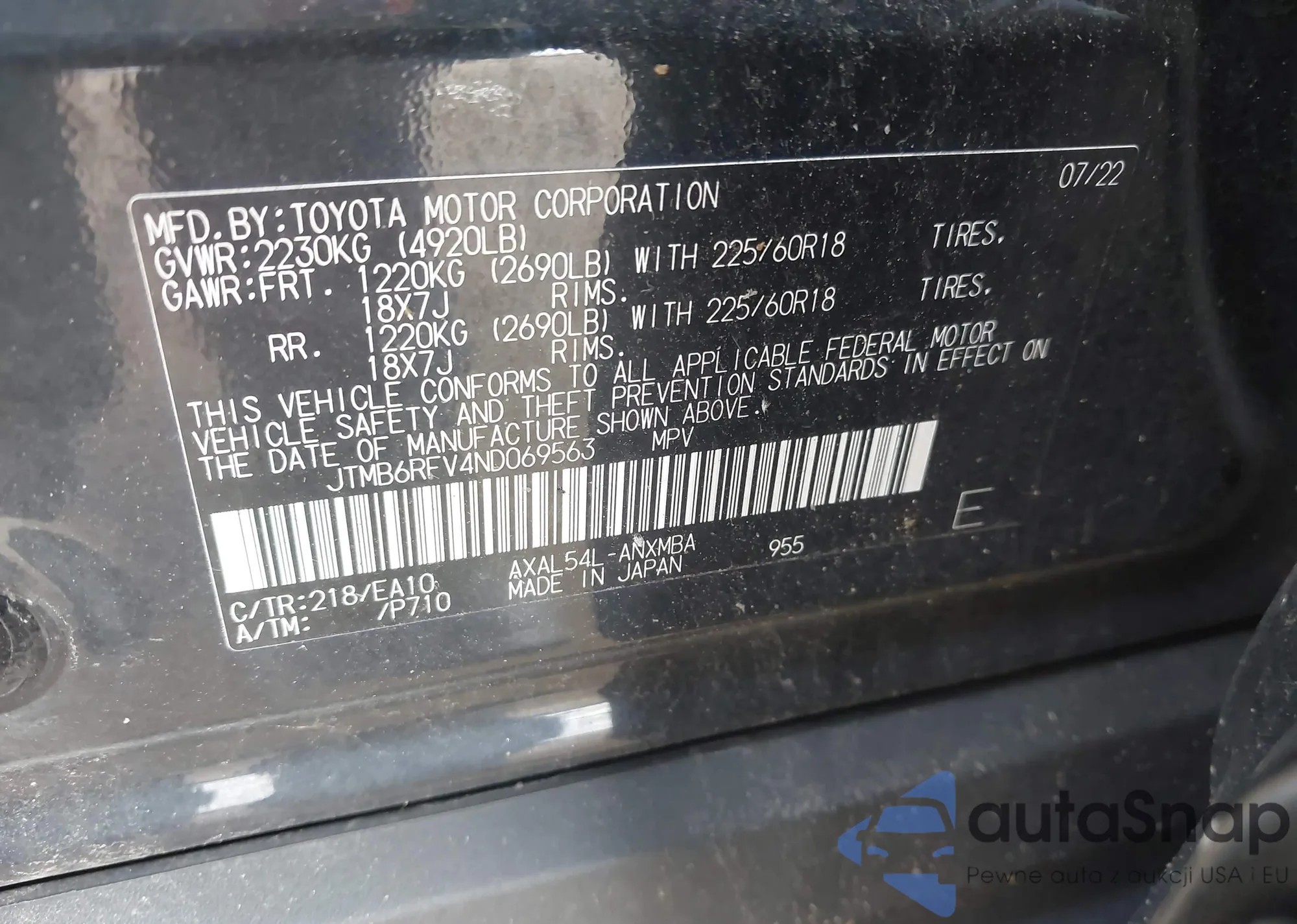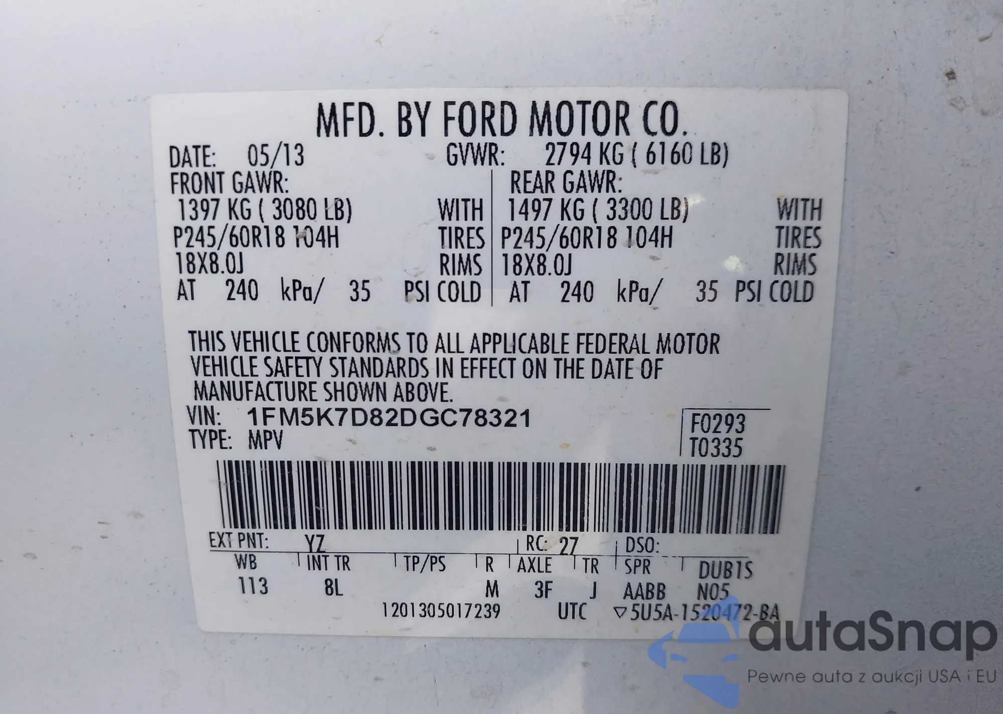 • VIN 5J8TB3H52DL000872