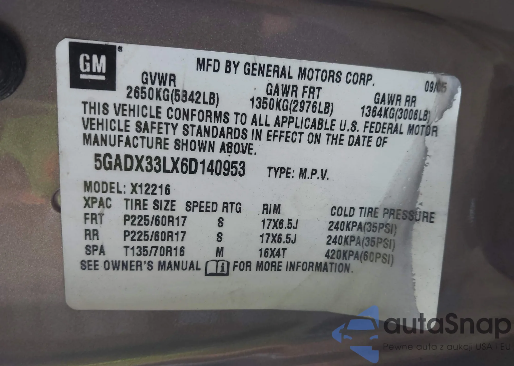 LOT: 43390858 VIN: 1GKFK66U25J123242