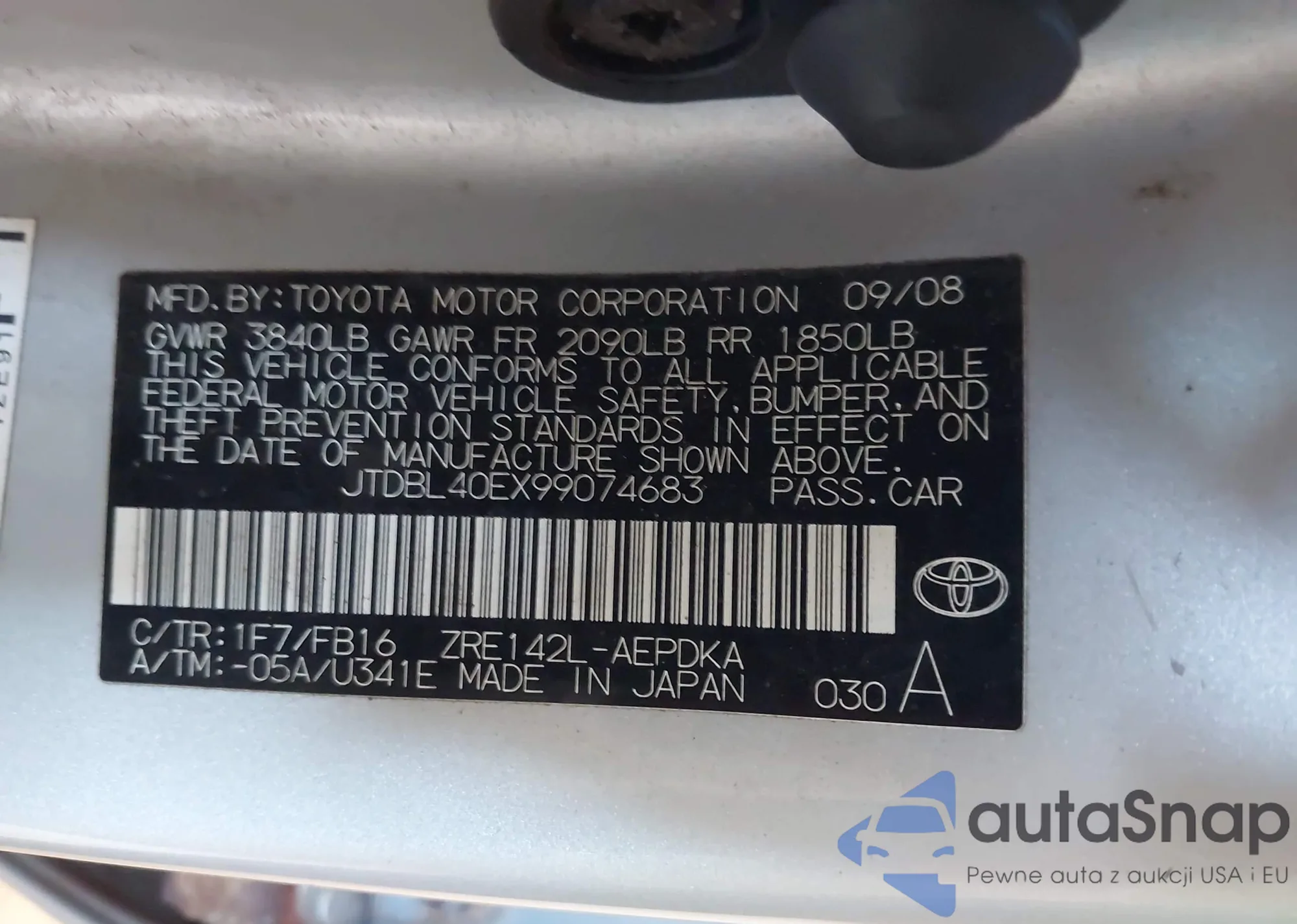 LOT: 43353275 VIN: JTDBL40EX99074683