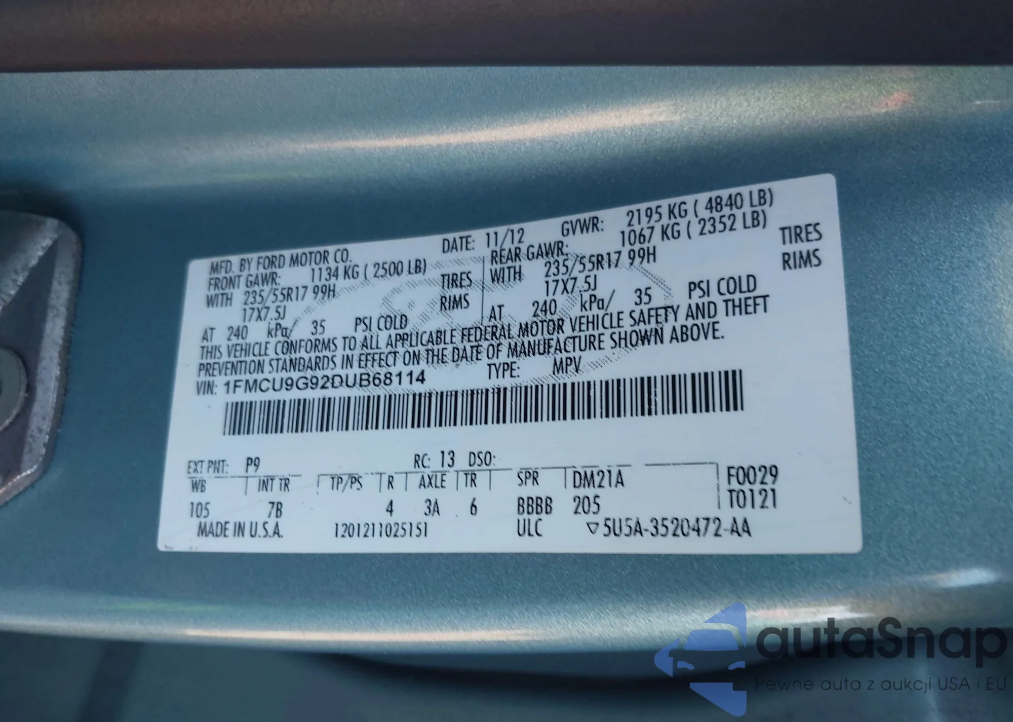 • VIN 1FMCU0F7XEUD58160